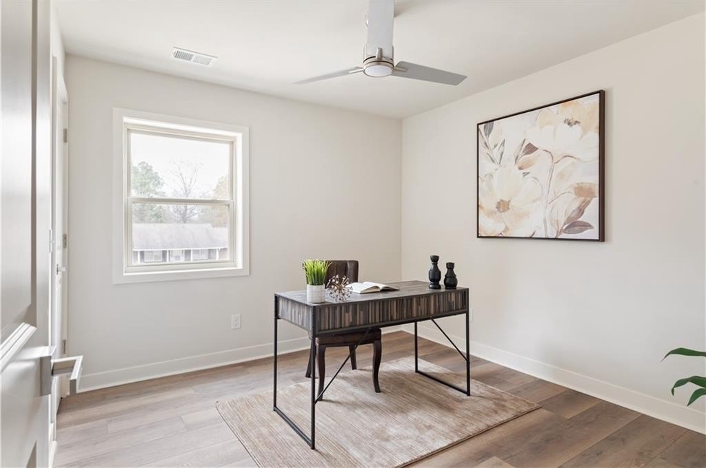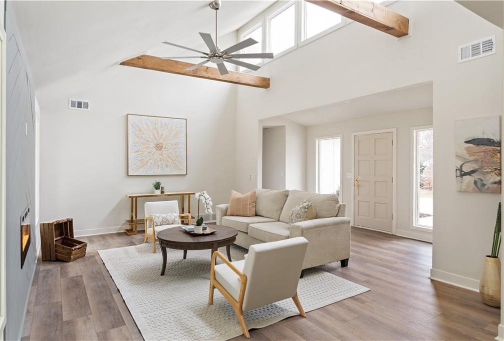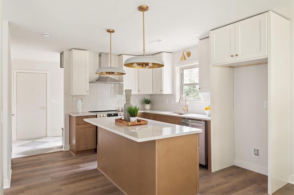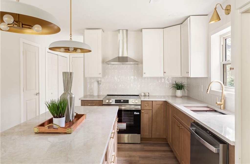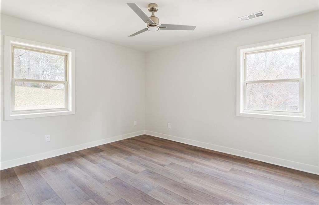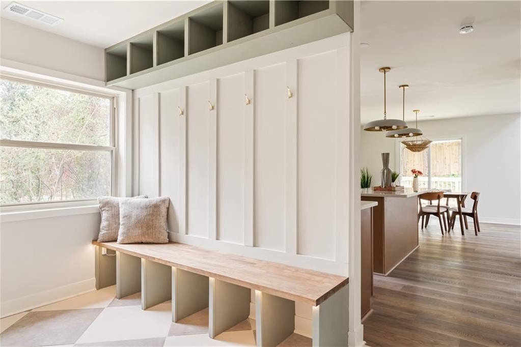 A rare, completely-renovated, modern farmhouse styled ranch with natural light, privacy, and timeless details just minutes to the Silver Comet Trail, Smyrna, and Vinings. Sitting on a private corner cul-de-sac lot, the exterior features a soft cream color with bronze accents, natural wood peaks, a new roof and board-and-batten siding. Step inside this 3-bedroom, 2-bath ranch through the oversized 2-car garage, that leads into a custom mudroom - something you won’t find in most homes. A must see! The kitchen is finished with Taj Mahal quartz, a spacious island, brand new appliances and a view of clerestory windows that brighten the living room. High ceilings and an electric fireplace anchor the main living space along with large picture windows with views into your back yard. Step into your primary suite, a spacious bedroom with natural light and luxury finishes. Checkerboard tile, natural wood cabinets, an 8-foot walk-in shower, a double vanity with an additional pantry for storage, and a sizeable walk in closet. The two secondary bedrooms are well sized with ample-closet space. Every paint color, fixture, and finish has been thoughtfully selected to create a warm and welcoming living experience. Outside, a new deck overlooks the backyard with plenty of privacy and space for entertainment, with the opportunity to expand the yard space with just minimal effort!