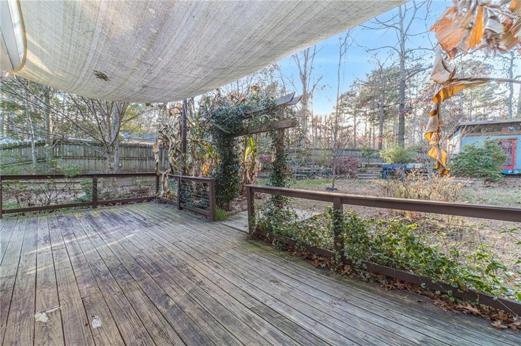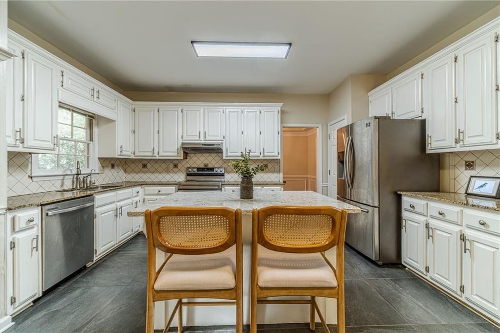 Experience exceptional comfort and versatility in this beautifully maintained home, privately set back from the road in an established, safe, and highly desirable neighborhood known for its sought-after school systems and close proximity to top-rated schools, shopping centers, dining, and everyday conveniences. The long, extended driveway—rarely found in today’s market—offers parking for up to ten cars, making arrival and hosting effortless. Fresh interior paint welcomes you inside, where a thoughtful layout caters to modern living. A dedicated den provides an ideal home office, while the spacious family room creates a warm setting for gatherings and relaxation. Smart-home features, including a smart thermostat, enhance both comfort and efficiency. The bright, inviting kitchen features granite countertops, abundant white cabinetry, stainless steel appliances, and a comfortable breakfast area, with seamless connection to the formal dining room to make hosting easy and enjoyable. This home also offers the exceptional benefit of having two separate Owner’s Suites. The main-level suite boasts an updated bathroom with a soaking tub, separate shower, and double vanity. The upper-level suite is impressively spacious, complete with a large en suite bath, double vanities, an oversized shower, and a charming hidden storage closet. The additional bedrooms are generously sized with plentiful closet space and share a well-appointed hall bath. Outdoors, the fenced backyard provides a peaceful escape. Mature trees, vibrant shrubs, tranquil seating areas, and a serene KOI pond create a true retreat—perfect for gardening, relaxing, or quiet mornings with nature. With its unbeatable location, smart-home upgrades, fresh cosmetic touches, expansive parking, and rare dual-suite floorplan, this property brings together comfort, privacy, and convenience in one exceptional offering.