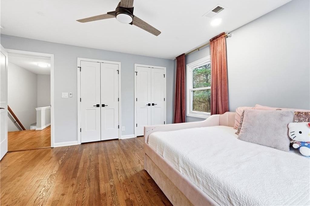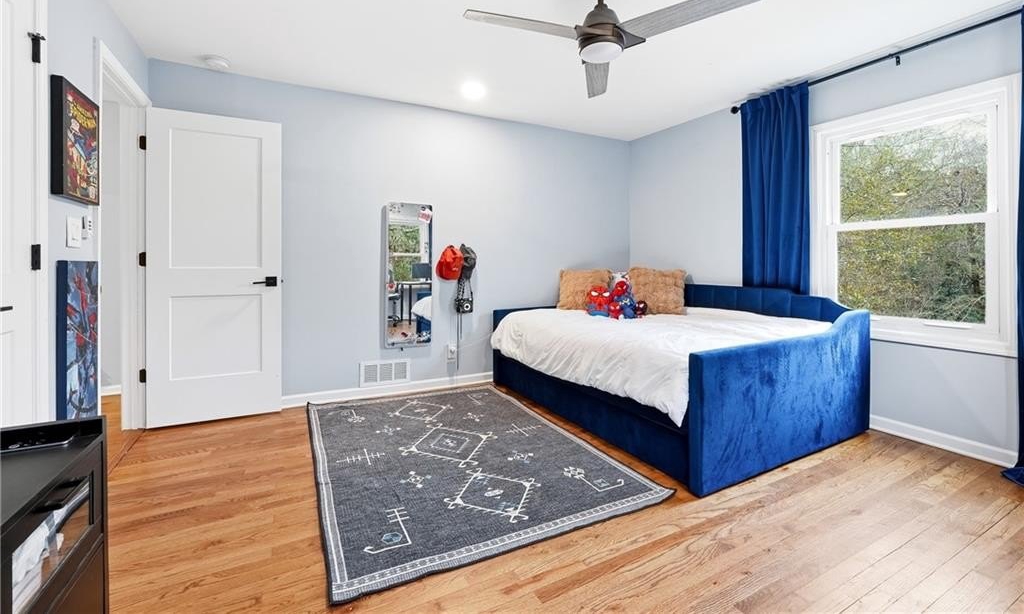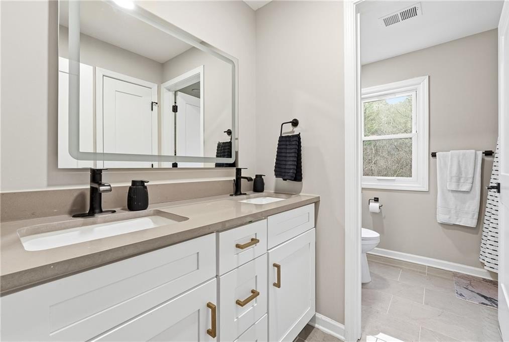 Upstairs, the oversized primary suite feels like a retreat all its own. The walk-in closet features a custom system that makes staying organized effortless, and the spa-like bathroom is finished with sleek quartz countertops. Every secondary bath throughout the home has been updated in the same elevated style, giving the whole house a sense of consistency and care.