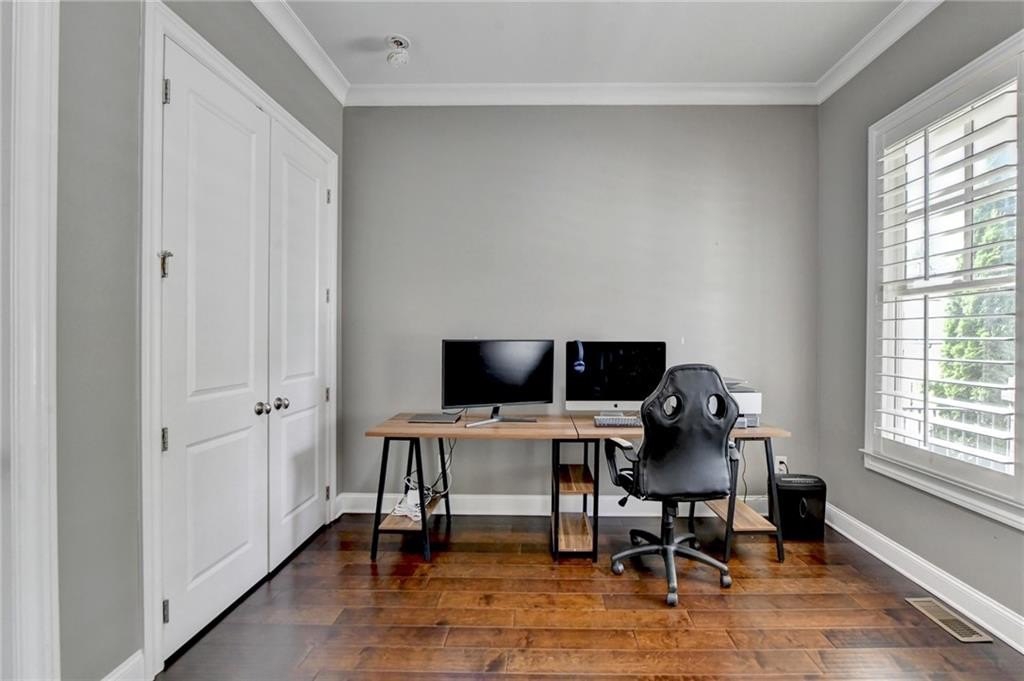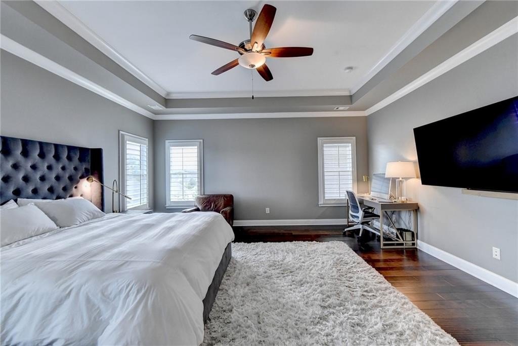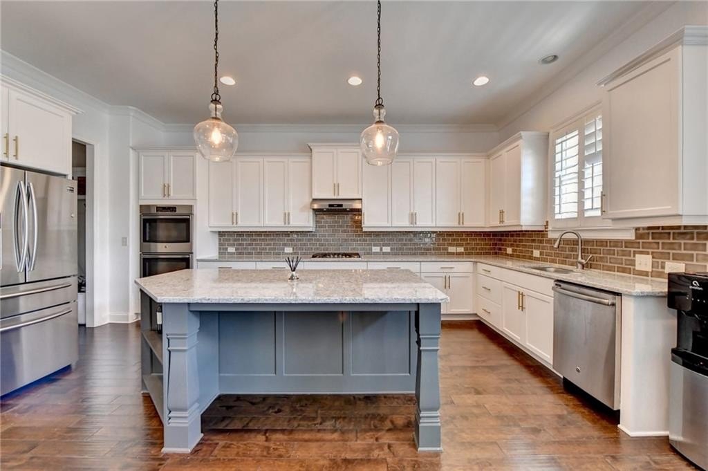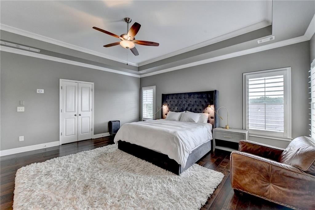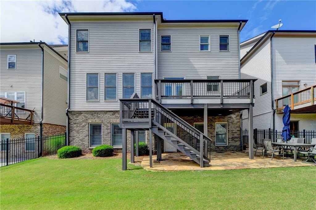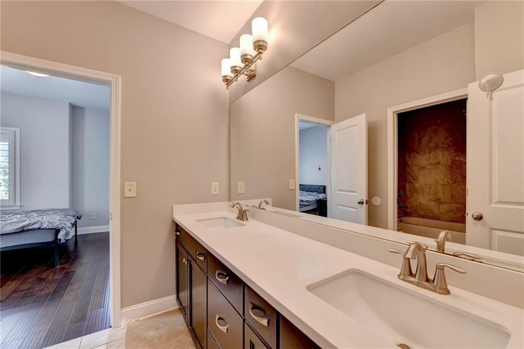 Welcome to this Beautiful home located in the prestigious, award-winning gated community of Bellmoore Park, nestled in the heart of Johns Creek and zoned for the highly acclaimed Northview High School. This home features the coveted “Montgomery” floor plan, boasting seven spacious bedrooms and six full bathrooms, including a fully finished basement—all meticulously maintained and in excellent condition. A brick-and-stone front porch ,Is a quiet place for you to sit and sip your morning coffee to begin your day. As you step into the entrance foyer, you're immediately welcomed by open-concept layout and modern design ,and soaring 10-foot ceiling on the main level that enhance the sense of space and elegance. Formal dining room- perfect for hosting family meals or special occasions. Spacious gourmet kitchen equipped with a gas cooktop, double oven, granite countertops, white cabinetry, and an oversized center island, perfect for both everyday living and entertaining. Elegant hardwood flooring runs throughout the main level, enhancing the overall warmth and sophistication of the space. Huge family room with cozy fireplace and plenty of daylight. The main level includes a guest bedroom or flexible space with a full bathroom. Upstairs, you’ll find four bedrooms and three full bathrooms include luxurious owner’s suite complete with a soaking tub, frameless glass shower, double vanities, and his-and-her walk-in closets. Two additional bedrooms share a full bath with a double vanity, and another private bedroom suite includes its own full bathroom. A spacious laundry room with a utility sink and walk-in storage closet adds to the home’s convenience. The beautifully finished basement feels like an extension of the main living space, featuring a large living area with a gas fireplace and custom built-ins, a bar with granite countertops and tile backsplash, a private guest bedroom with full bath, and a full-size exercise room with direct access to the extended patio and fenced backyard. Community amenities include two resort-style swimming pools, a clubhouse, state-of-the-art fitness center, tennis courts, basketball court, playground, and a scenic grand lawn. With HOA-maintained lawn care, top-rated schools, luxury amenities, and superior craftsmanship, this is truly the dream home that offers everything you could want and more. Don’t miss out on this incredible opportunity to own a move-in ready home in one of Johns Creek’s most sought-after communities.