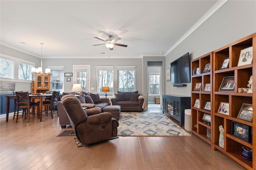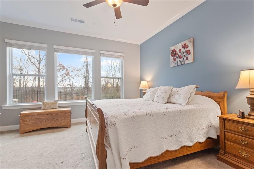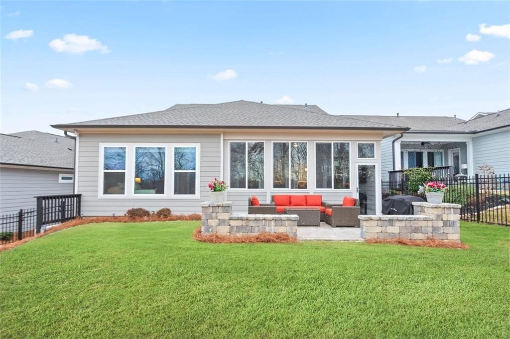 A must see! This stunning home shows like a model, only 3 years old, located in an exclusive 55+ gated community. Featuring a large master bedroom with a custom closet, a 2nd bedroom plus an office! The chef's kitchen boasts quartz countertops, wall oven, gas cooktop, upgraded ceiling-height cabinetry, stainless steel appliances, and a massive entertaining island. The open floor plan flows seamlessly into the living area and sunroom. Enjoy one of the best lots in The Retreat with a fenced backyard. Residents benefit from upscale amenities plus access to Sterling on the Lake's resort-style pools, tennis and pickleball courts, fitness centers, theater, library, kayaking, and miles of walking trails. HOA-maintained landscaping and Hall County senior tax exemptions add convenience and value. Close to Lake Lanier, shopping, and dining.