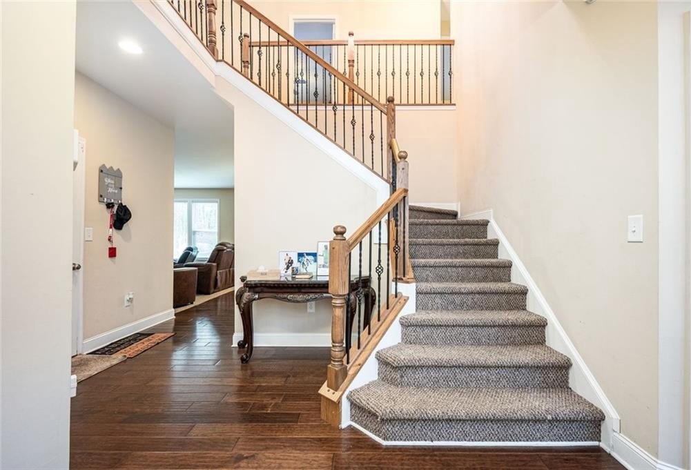 Welcome to this spacious and beautifully designed 5bedroom and 4.5 bath home located at the end of a quiet cul-de-sac street in Lost Mountain Trails. From the moment you step into the inviting foyer, you’ll appreciate the thoughtful layout and finishes throughout. The main level features hardwood floors, a separate dining room, and a convenient half bath for guests. A standout benefit is the oversized bedroom on the main level, perfect for in-laws or guests, complete with a large walk-in closet and a private full bath featuring a walk-in shower.