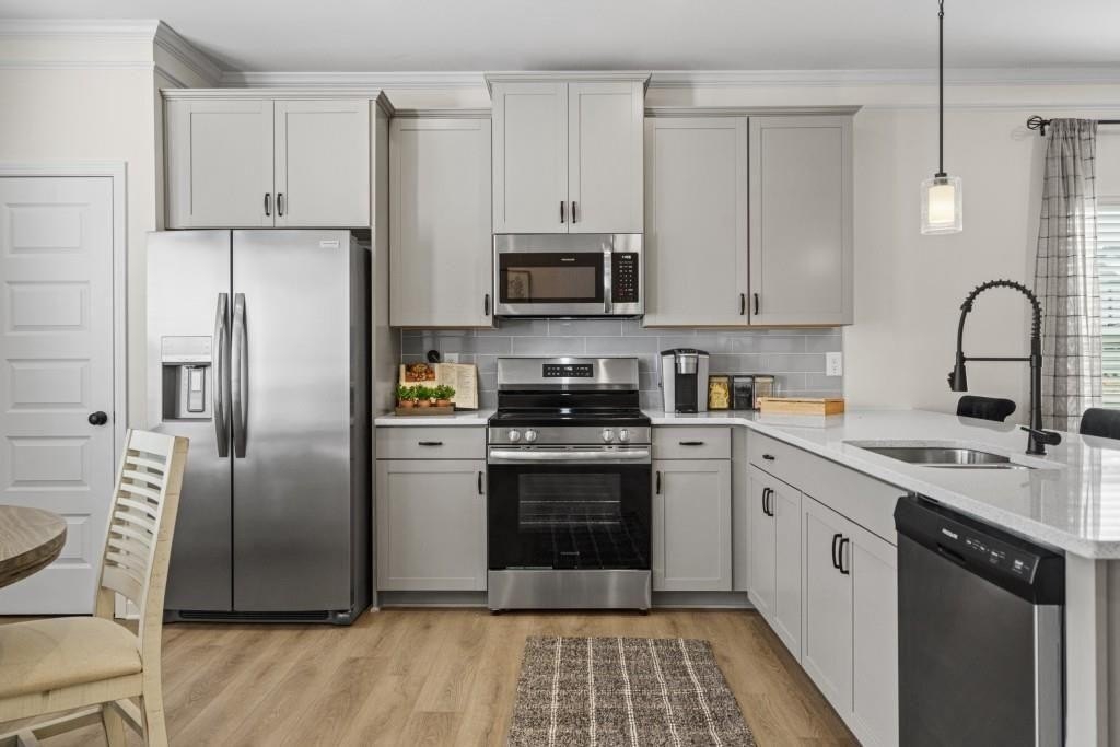Move in Ready January! The Maddux II plan, in Smith Douglas Homes, Townes At The Stiles community. This 3BR/2.5BA townhome thoughtfully designed layout blends style with everyday function. Its open-concept kitchen, dining and living areas create an inviting space that flows seamlessly to the rear yard and patio. The kitchen is enhanced with granite countertops, adding durability and elegance. Upstairs, the primary suite is a private retreat featuring a spacious bath with a tile shower, garden tub, walk-in closet and separate water closet. Two additional bedrooms, a full bath and a convenient second floor laundry room provide efficiency for the whole household. Open iron stair rails on both levels add a modern, airy touch to the home's design. Nine ft ceiling heights on both levels. The Stiles is a swim community and the lawn maintenance included in your HOA fees leaves you more time to do the things you love! Photos are representative of plan not of actual home being built. Seller incentives with the use of preferred lender.