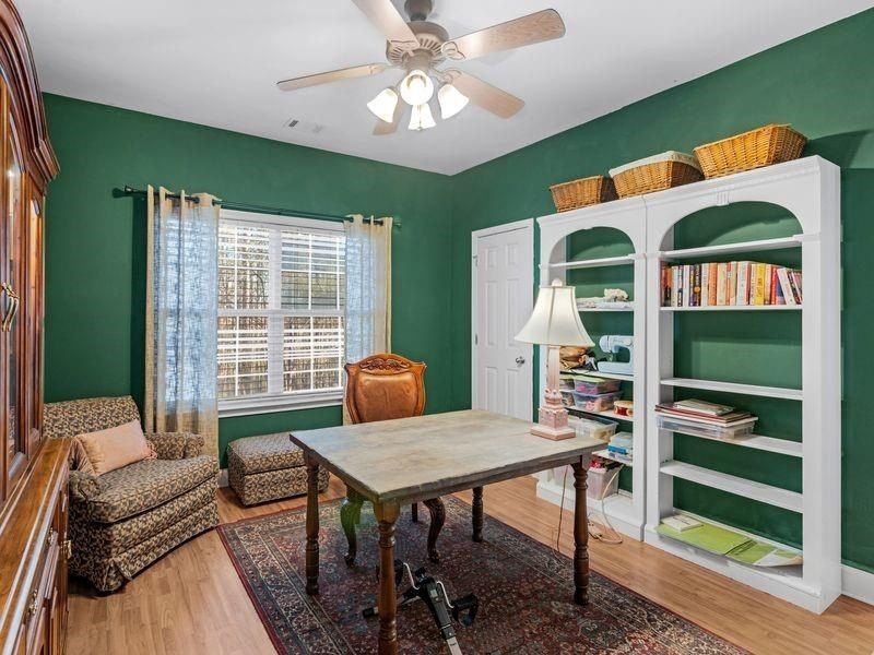 The spacious master suite boasts trey ceilings and a luxurious master bath complete with a separate shower, relaxing soaking tub, his-and-hers vanities, and his-and-hers closets. The suite opens into a generous sitting room that can also serve as a home office or formal living room. A split-bedroom plan ensures privacy, with two sizeable secondary bedrooms connected by a convenient Jack and Jill bath.
