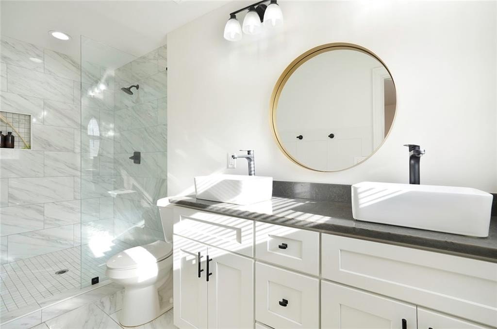 The primary suite features a beautifully updated bathroom with a large tile walk-in shower, adding a touch of luxury you’ll appreciate every day.