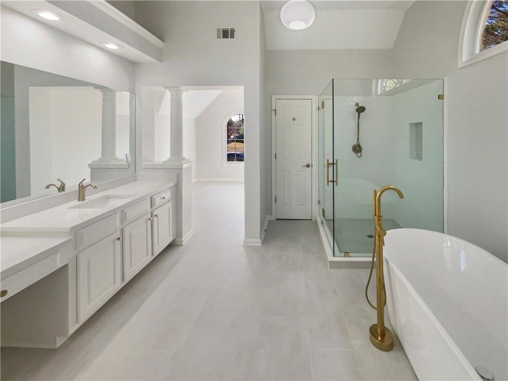 Welcome to your beautifully renovated dream home, where every detail has been thoughtfully updated. The neutral color paint scheme provides a calming ambiance, complemented by fresh interior and exterior paint. The living room boasts a cozy fireplace, perfect for chilly evenings. The primary bathroom is a haven of relaxation with double sinks, a separate tub, and shower. Refinished hardwood floors and new carpet adds a touch of elegance. Outside, enjoy a fenced-in backyard with a deck and patio, ideal for entertaining or simply enjoying a quiet moment. This home is a must-see for those seeking a move-in ready property.. Included 100-Day Home Warranty with buyer activation