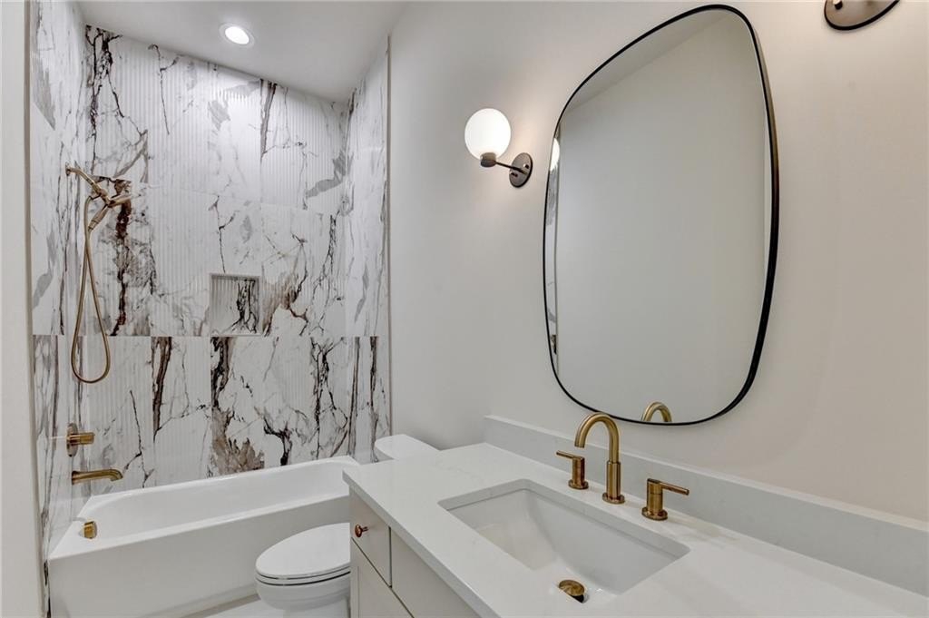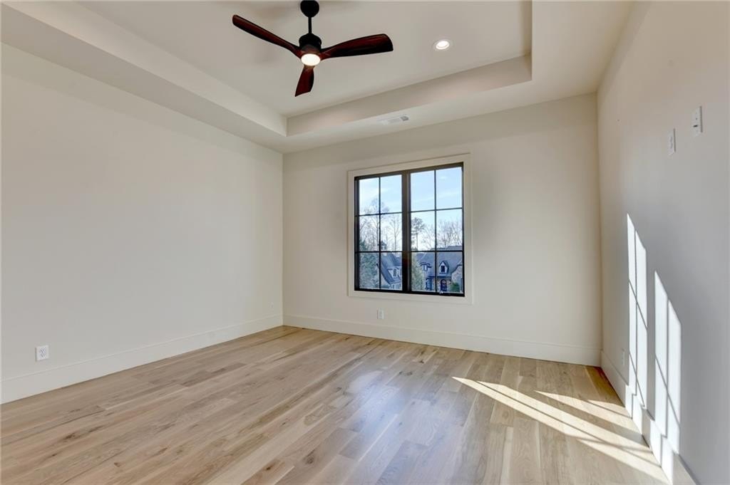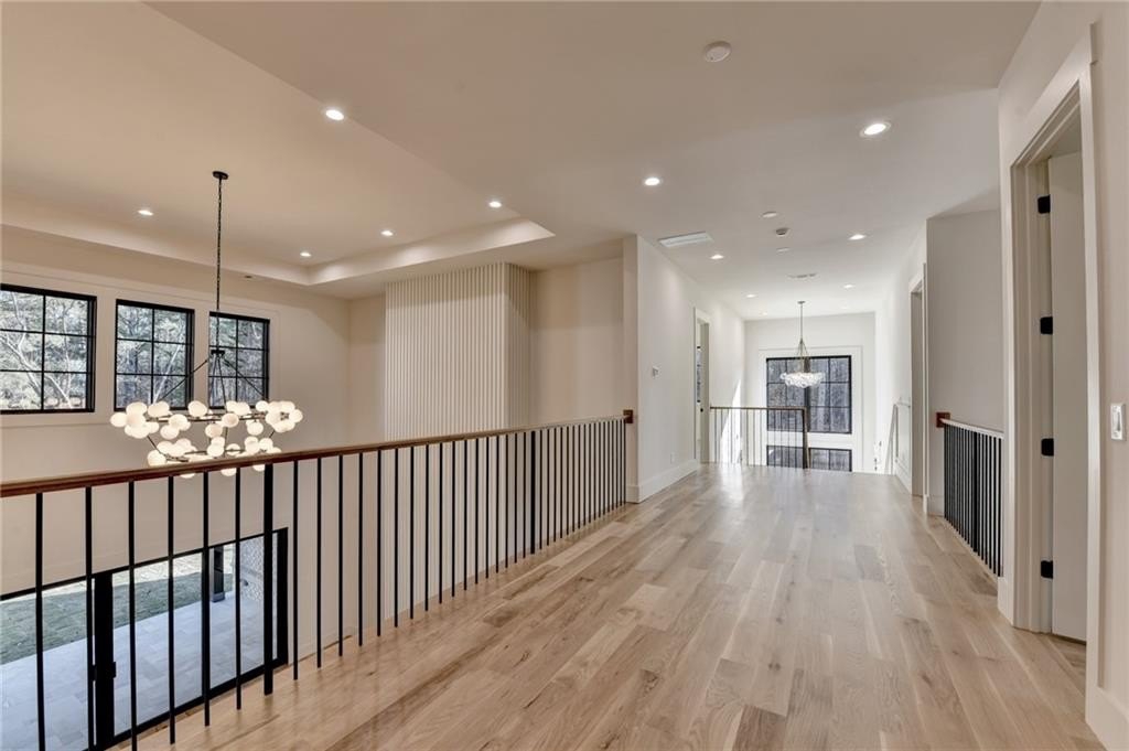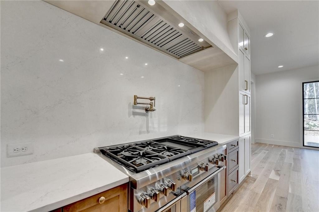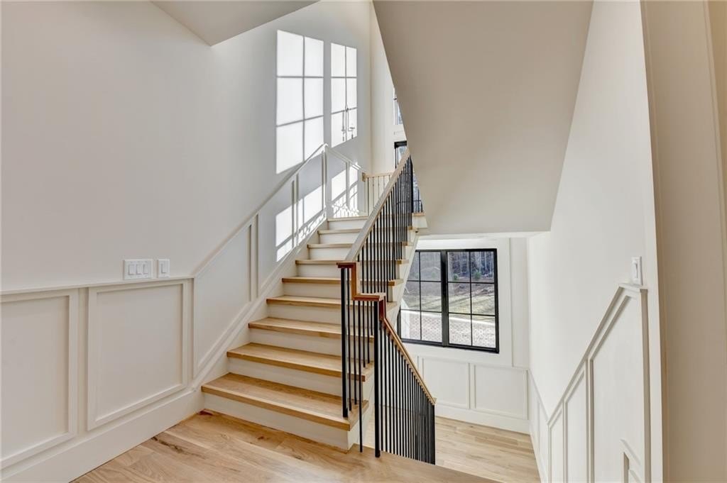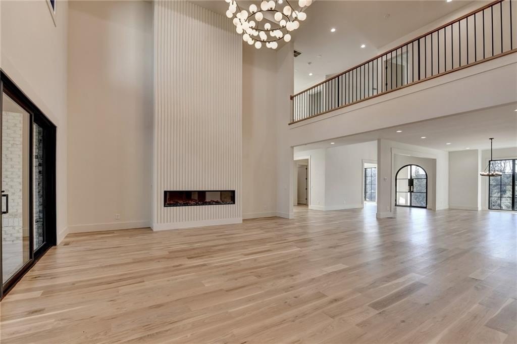 This move in ready new construction is in the much thought after Echelon Golf Club. Featuring a 5 bedroom and 5 1/2 bathroom in an open plan transitional concept. Offering 6348 heated sq ft and 3400 sq ft of unfinished basement stubbed for an additional bedroom and full bath. This beautiful house offers a master on main suite with Kohler double shower systems, double vanities with marble countertop and inegerated sinks, it's own laundry room and custom closet. Through a covered porch, you can walk out to the flat backyard with plenty of room for a future swimming pool. The open dinning room features a dry bar with marble countertop and floating shelves and paneled wall. The two story foyer leads you to the two story great room boasting an elegant paneled wall with an attractive linear electric fireplace. The main kitchen features high-end custom floor to ceiling cabinets, oversized island with quartz counter tops and backsplash, integrated sink and waterfall. High-end stainless steel appliances with paneled doors on the fridge and dishwasher. Brizo kitchen faucet and pot filer. The main kitchen adjoins a fully equipped prep kitchen/pantry and a cozy mud room. The interconnected 4 car garage features two electric vehicle charging stations and a 14 ft ceiling to accommodate lifts for the car enthusiast. The beautiful port-a-cochere is adorned by a golf cart garage on the left and a paved patio with a garden gate on the right, leading to the car port. The family room features a gas fireplace and marble mantel.