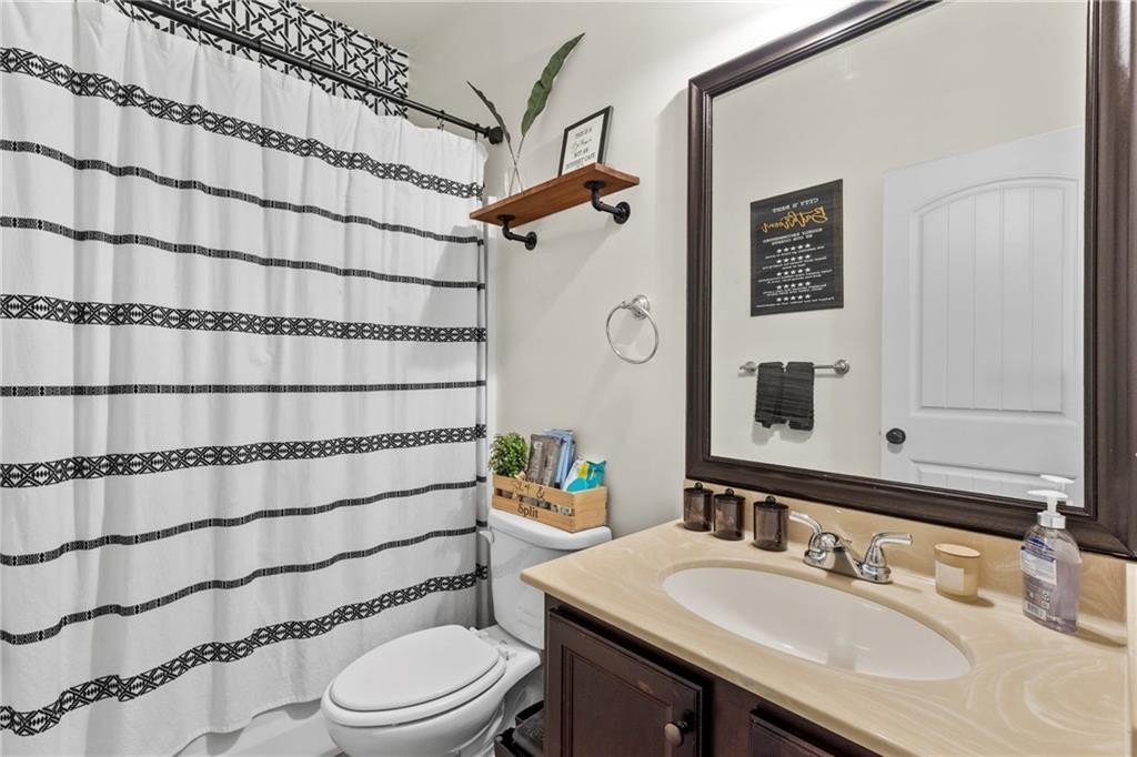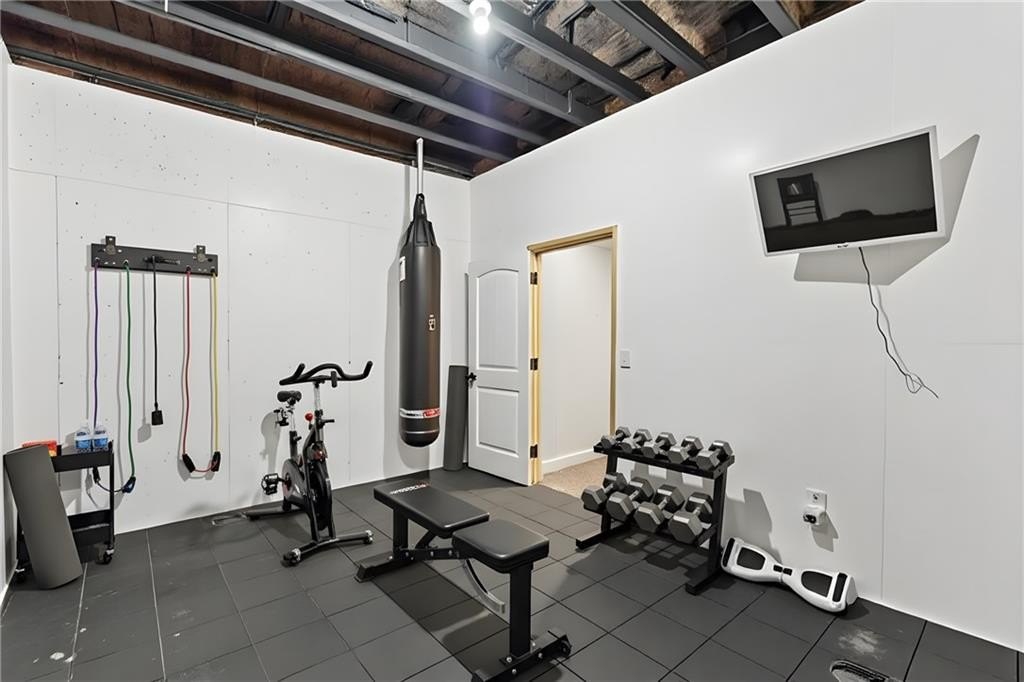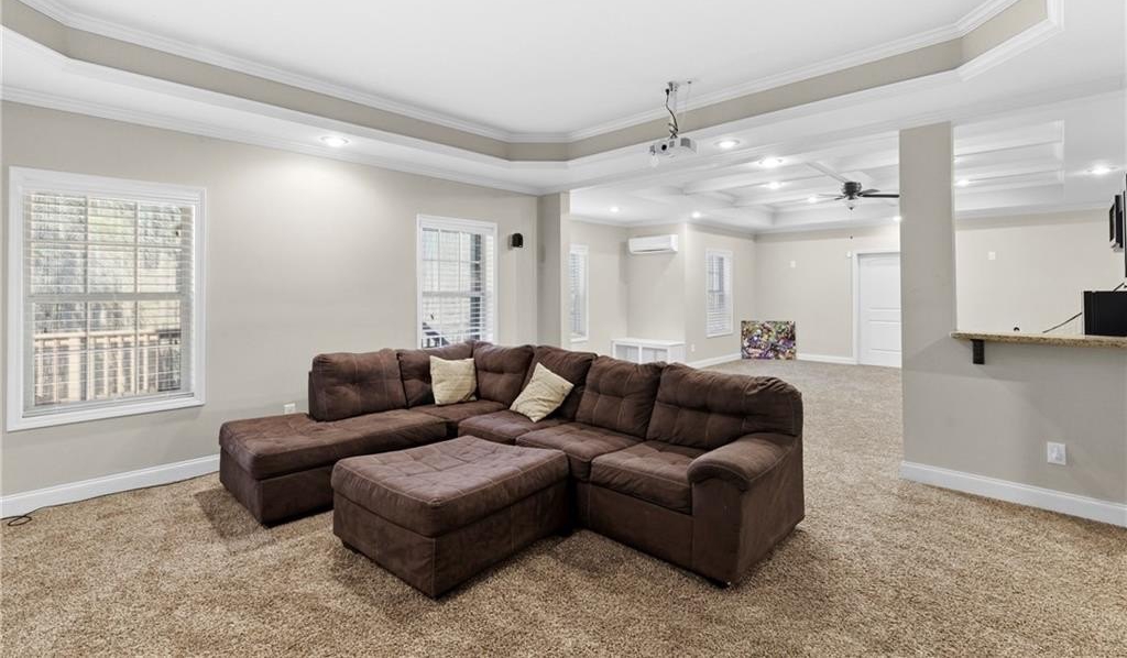 Discover a rare 1-acre retreat in a desirable Swim/Tennis community and the top-rated Grayson High School district. This beautifully updated home offers a bright, open layout with soaring ceilings and an expansive eat-in kitchen with island overlooking the fireside family room. A spacious mud room and custom built-ins add everyday convenience. Step onto the two-level deck to unwind, and enjoy the peaceful wooded views. The main level features a true en-suite bedroom plus an additional half bath, separate coffered ceiling dining and spacious living room. The finished terrace level includes a dedicated Home Gym, Media Room with projector, full bath, entertainment area, and a versatile flex room ideal as an office or bedroom. The private-entry workshop is perfect for tools, hobbies, or storage. Set on a full acre with mature landscaping, this home offers privacy while remaining close to Bay Creek Park, Tribble Mill Park, The Shoppes at Webb Gin, The Grove at Towne Center, Hwy 124, and Sugarloaf Pkwy. If you’re looking for land, space, upgraded interiors, and a finished basement in one of Grayson’s best locations, this home has it all.