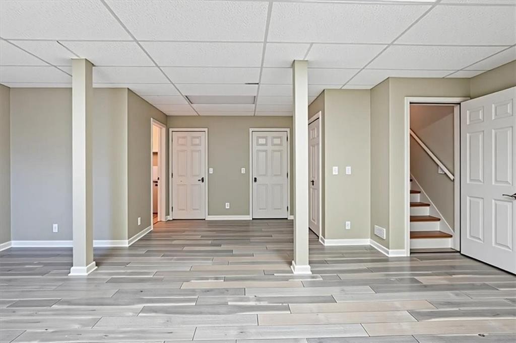 The finished terrace level includes its own full bath and stepless entry, making it an ideal in-law or teen suite. Outside, the property sits on a generous 1.36-acre level lot, offering endless possibilities for outdoor living, gardening, or future projects. A circular driveway welcomes guests at the front of the home, while a secondary driveway leads to the spacious two-car basement garage.
