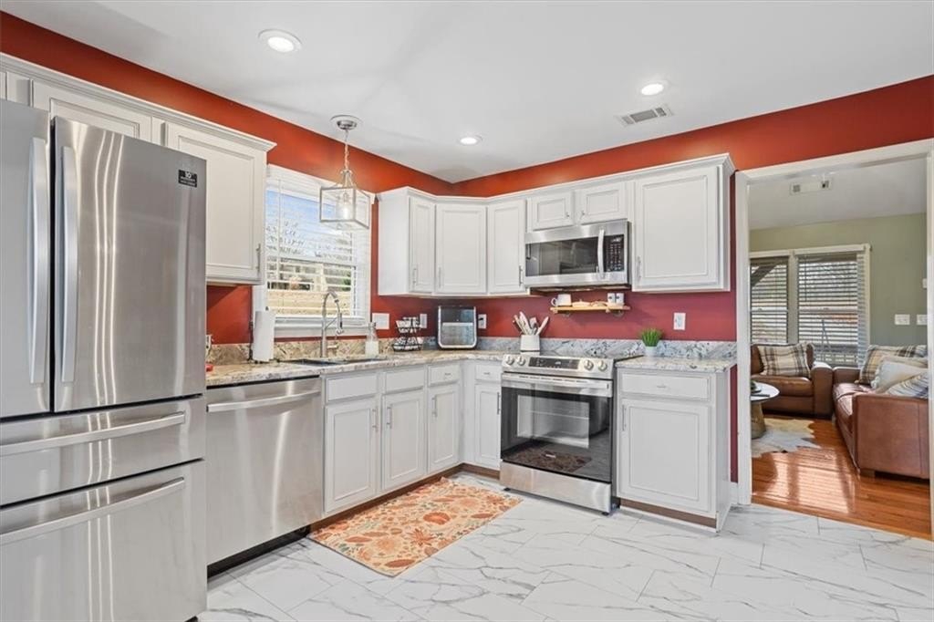 Beautiful craftsman-style ranch, with lots of upgrades! This home features a warm, inviting living area with a stacked-stone fireplace with gas logs and vaulted ceilings that create an open, airy feel. The large primary bedroom has a walk-in closet and en-suite. Upstairs has two secondary bedrooms, laundry area, and full bath.