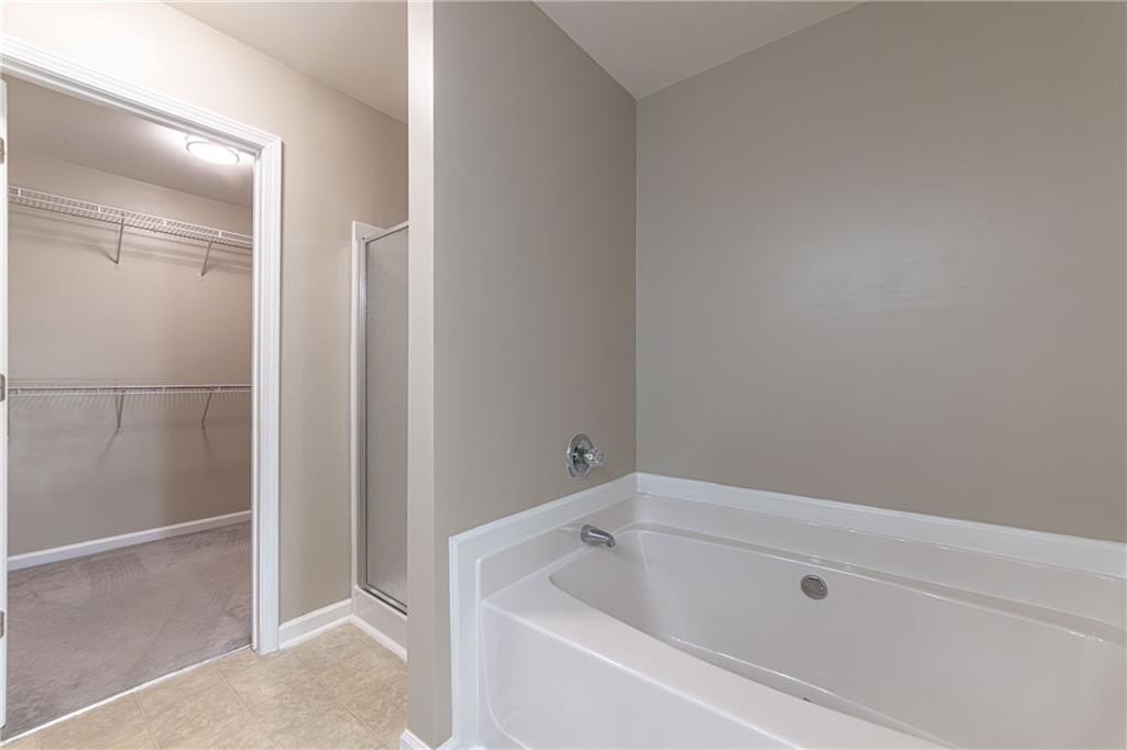 Upstairs, a decorative niche welcomes you into the second-floor landing. The oversized owner’s suite feels like its own retreat, featuring a spa-inspired bath with a soaking tub, separate shower, and a generous walk-in closet. Two additional spacious bedrooms share a well-appointed full bath, and the laundry room on the second floor adds everyday ease.