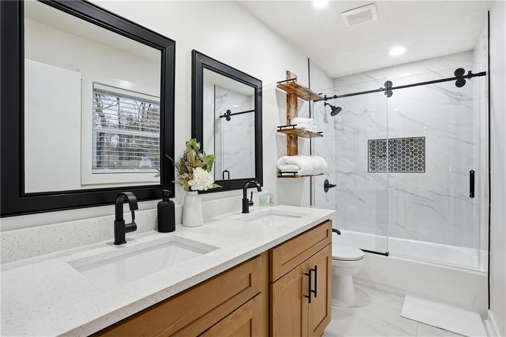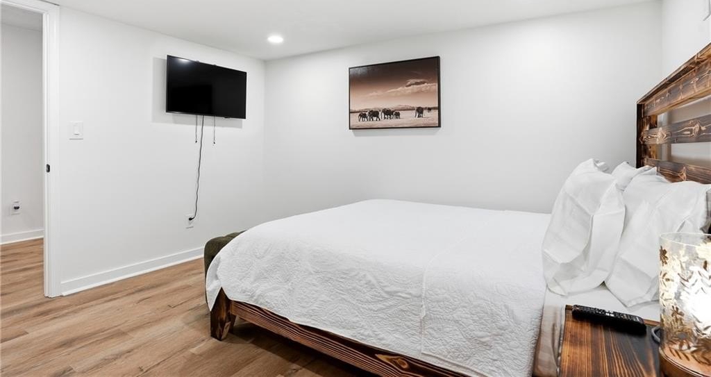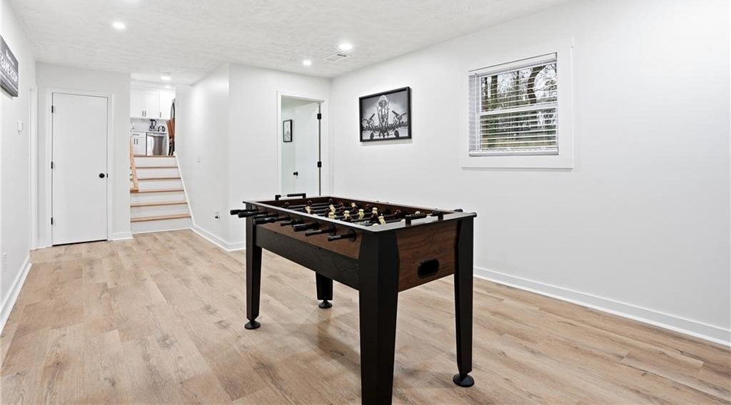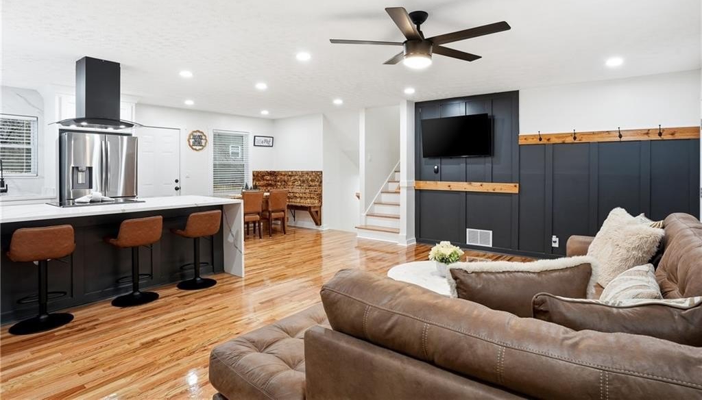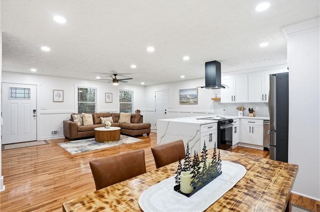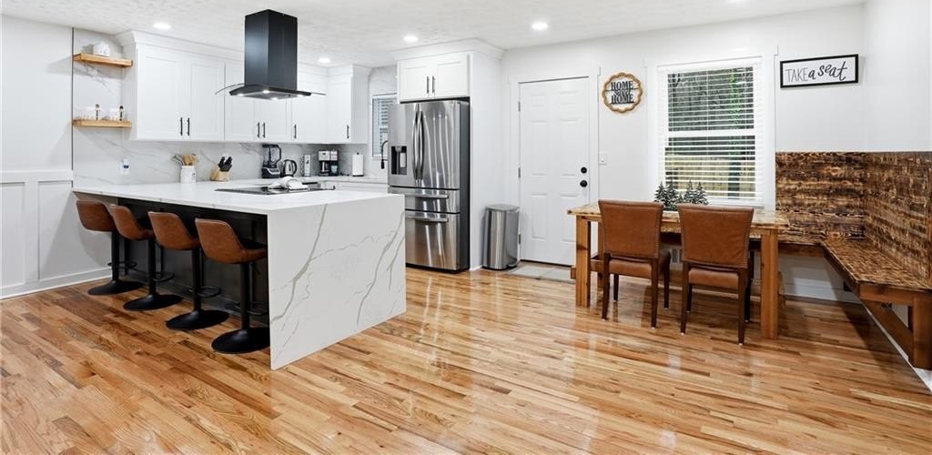 Welcome to 612 Mincey, a fully renovated multi-level residence located just minutes from the heart of Stone Mountain. Step inside to an inviting open-concept living area featuring gleaming hardwood floors and a stunning waterfall quartz kitchen island that anchors the modern, stylish kitchen.