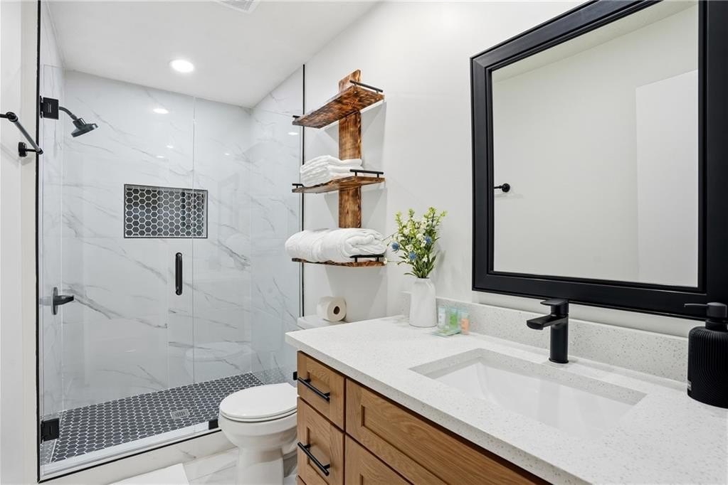 The upper level offers three spacious bedrooms and two beautifully updated full bathrooms, providing comfort and privacy for the whole family. Downstairs, you’ll find a second family room—perfect for movie nights, game days, or a cozy lounge space—along with two versatile bonus rooms and an additional full bathroom, ideal for guests, an office, or hobbies. Outside, enjoy a fully fenced backyard complete with a fire pit, creating the perfect setting for gatherings, relaxation, and outdoor fun. This home truly combines modern upgrades with thoughtful design—move-in ready and made for comfortable living.