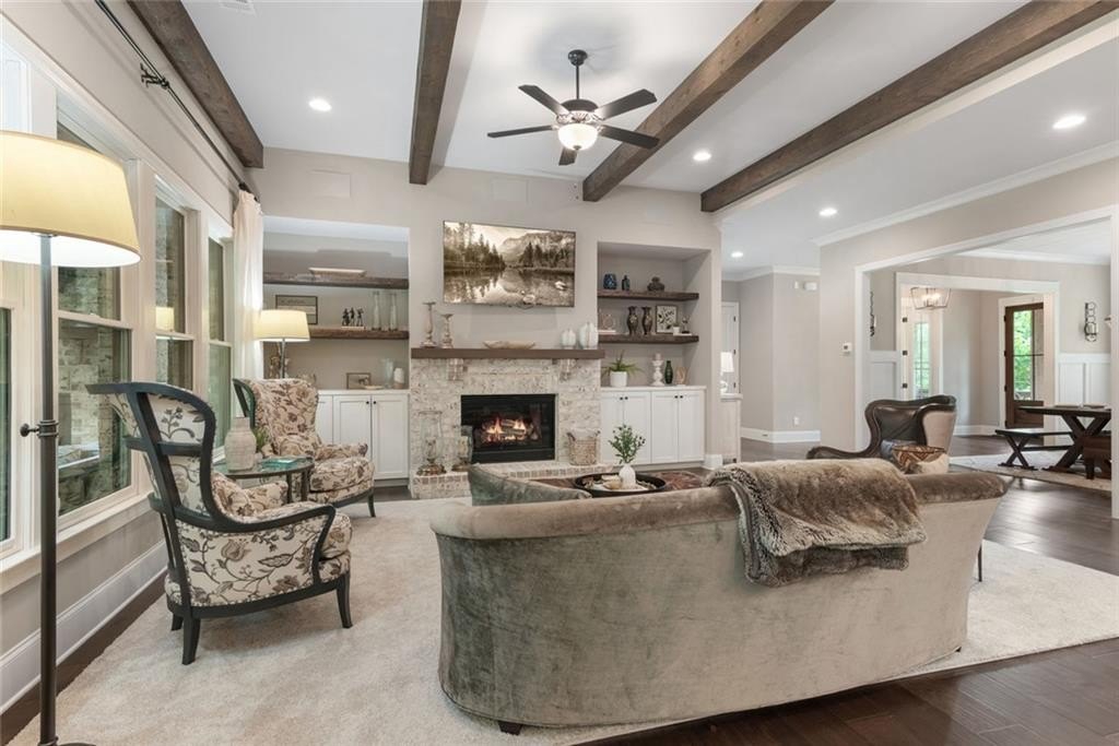 Dreaming of your own tennis court, basketball court, or just room to roam? This gorgeous Milton modern farmhouse sits on 3.3 acres at the end of a quiet cul-de-sac. Inside, soaring wood beams, a wall of windows, and custom built-ins frame the fireside family room. The bright, open kitchen wows with quartz counters, custom cabinetry, and a walk-in pantry. Around the corner, there’s a spacious drop zone—perfect for keeping life organized, with a cubby for everyone! Upstairs offers the ultimate layout—three ensuite bedrooms, a media room, and a dreamy primary suite that feels like a retreat, complete with a spa bath and custom closet. Step outside to a covered deck with fireplace, tongue & groove ceiling, and an in ground firepit perfect for smores. All-brick exterior, cedar columns, and unbeatable location—just 2 miles to dining, shopping, and top schools. You couldn’t build this home today at this price—don’t let it slip away.