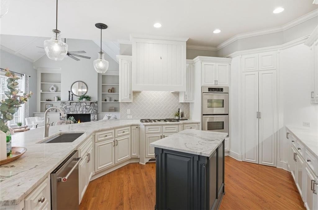 The heart of the home is the meticulously renovated kitchen, showcasing exquisite finishes and top-of-the-line appliances, designed for both casual dinners and grand gatherings. Each living space on the main level is flooded with natural light and features a cozy fireplace, creating an inviting atmosphere perfect for entertaining or relaxing at home.