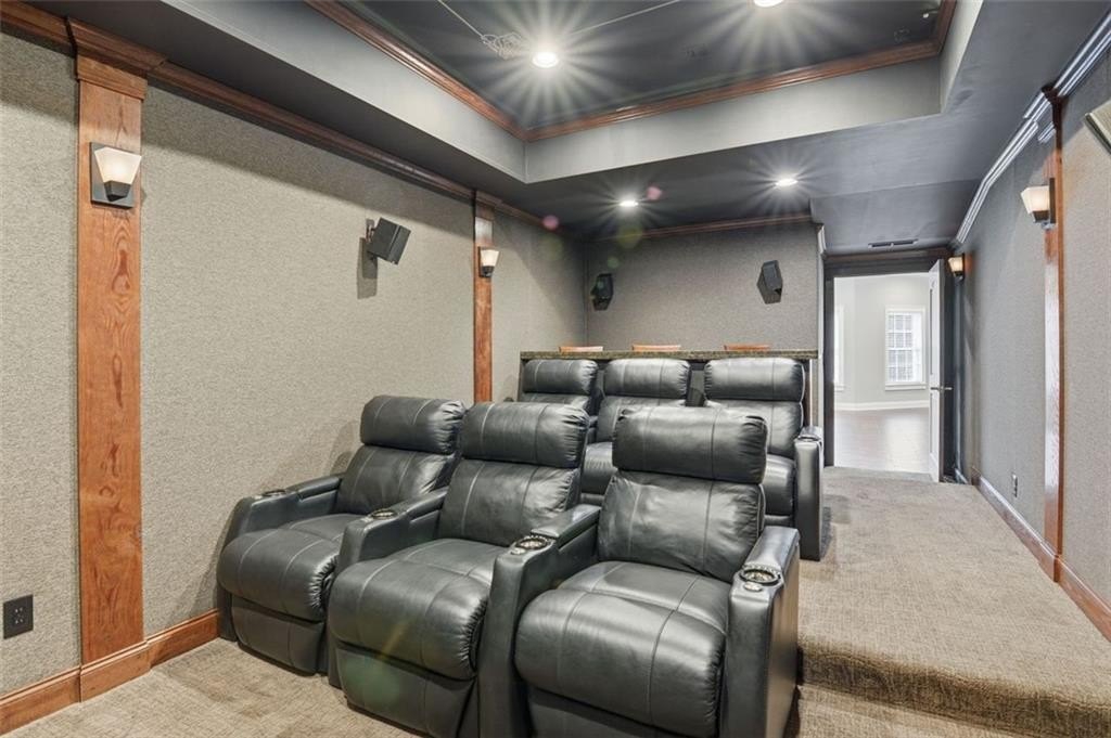 Experience movie nights like never before in the impressive theater room, perfect for enjoying the latest films or cheering on your favorite sports teams. The basement also includes a cozy kitchen nook equipped with a refrigerator and microwave, ideal for preparing snacks and refreshments without having to venture upstairs.