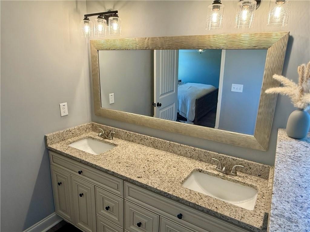 This home has a wonderful split bedroom plan. The primary bedroom is on the right side of the house, and includes a huge walk-in closet, double vanities, and separate soaking tub and shower. It is truly an oasis! The other two generously sized bedrooms are on the opposite side of the house. They have good closet space, great lighting, ceiling fans, and so much more!