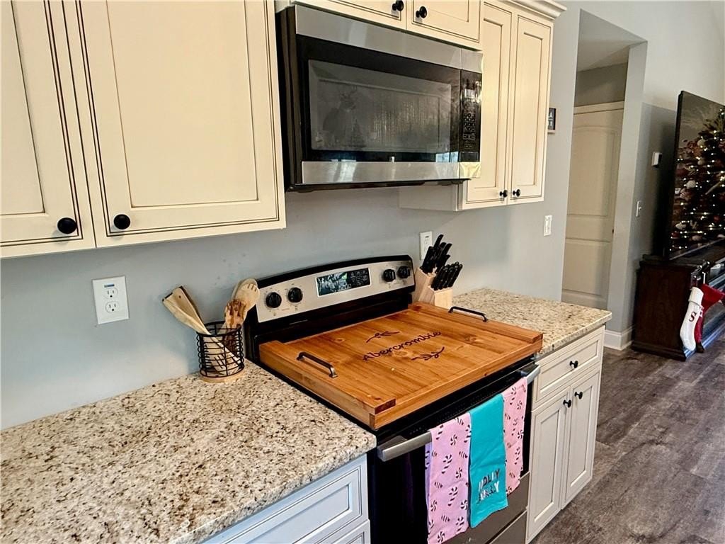 The entire home has beautiful, low maintenance, upgraded LVP. It is fantastic! The garage is large, and so is the driveway. You can easily accommodate your family and friends.