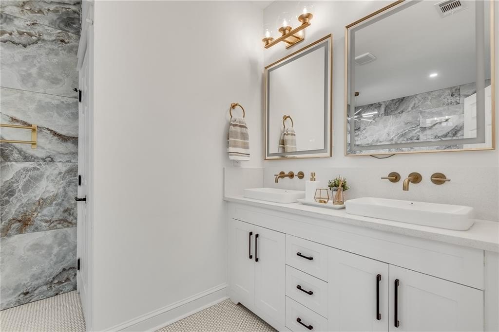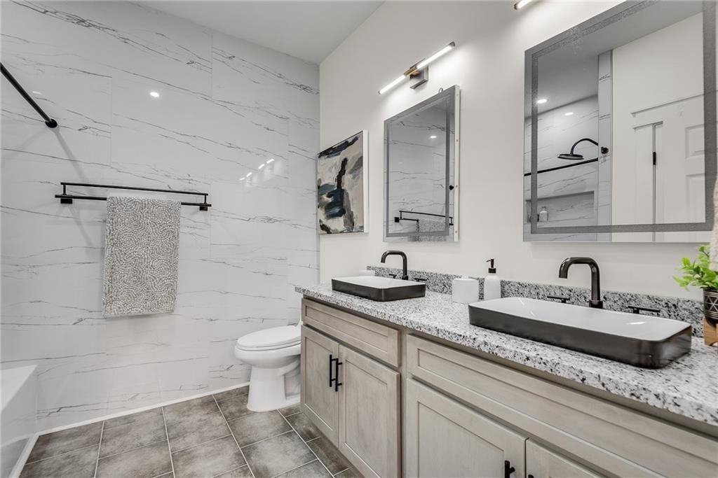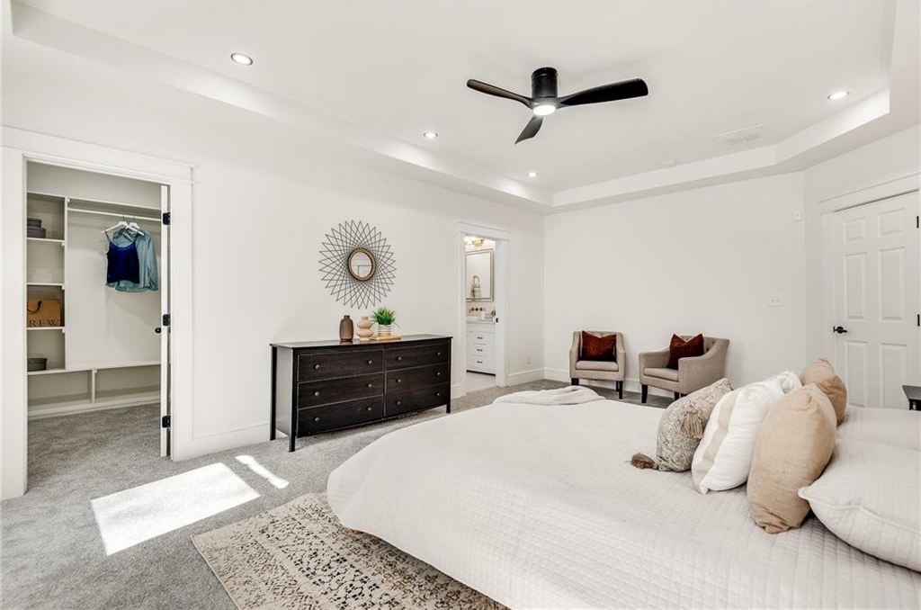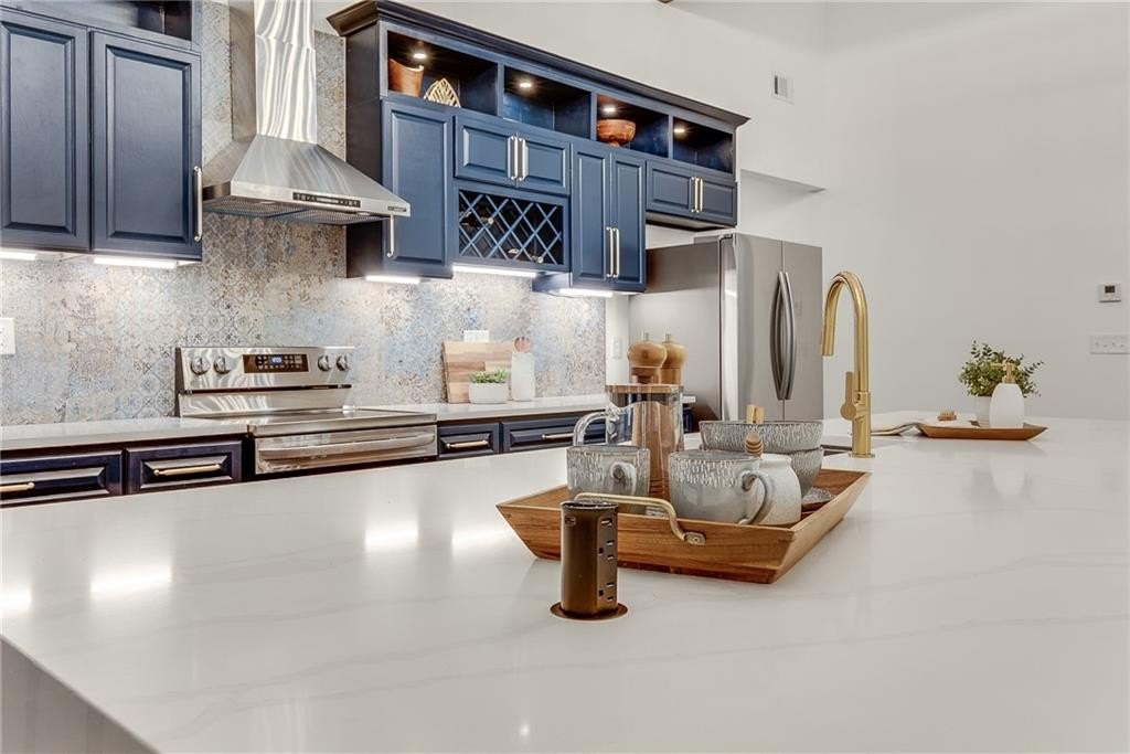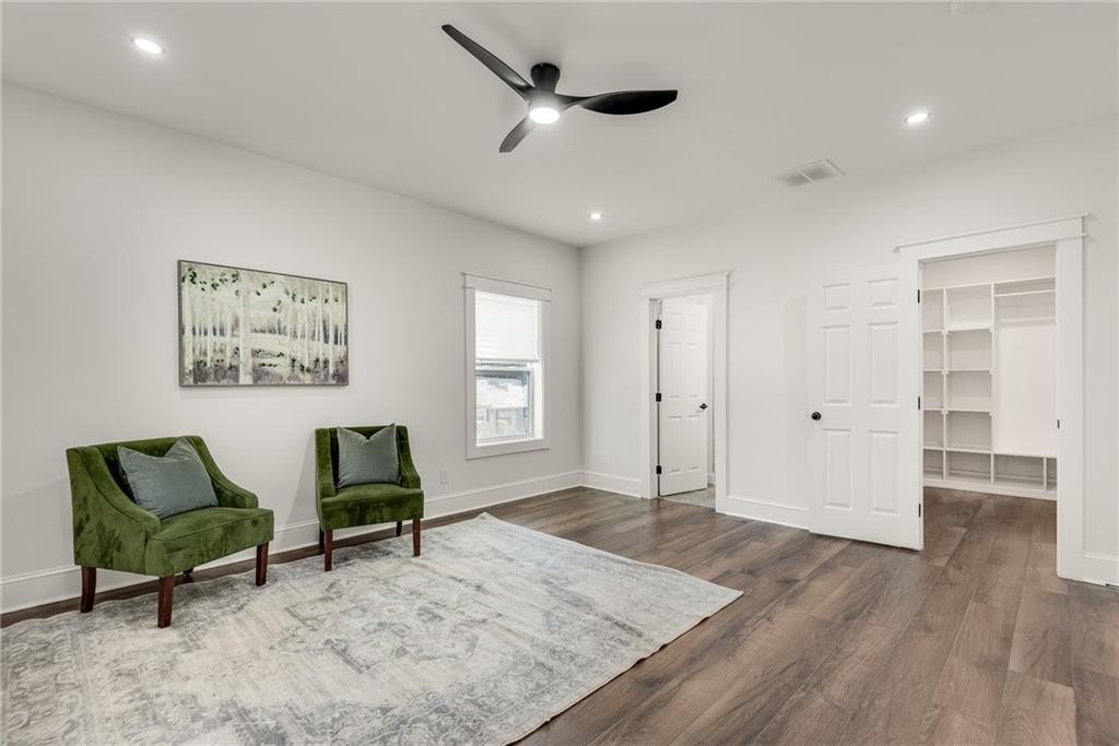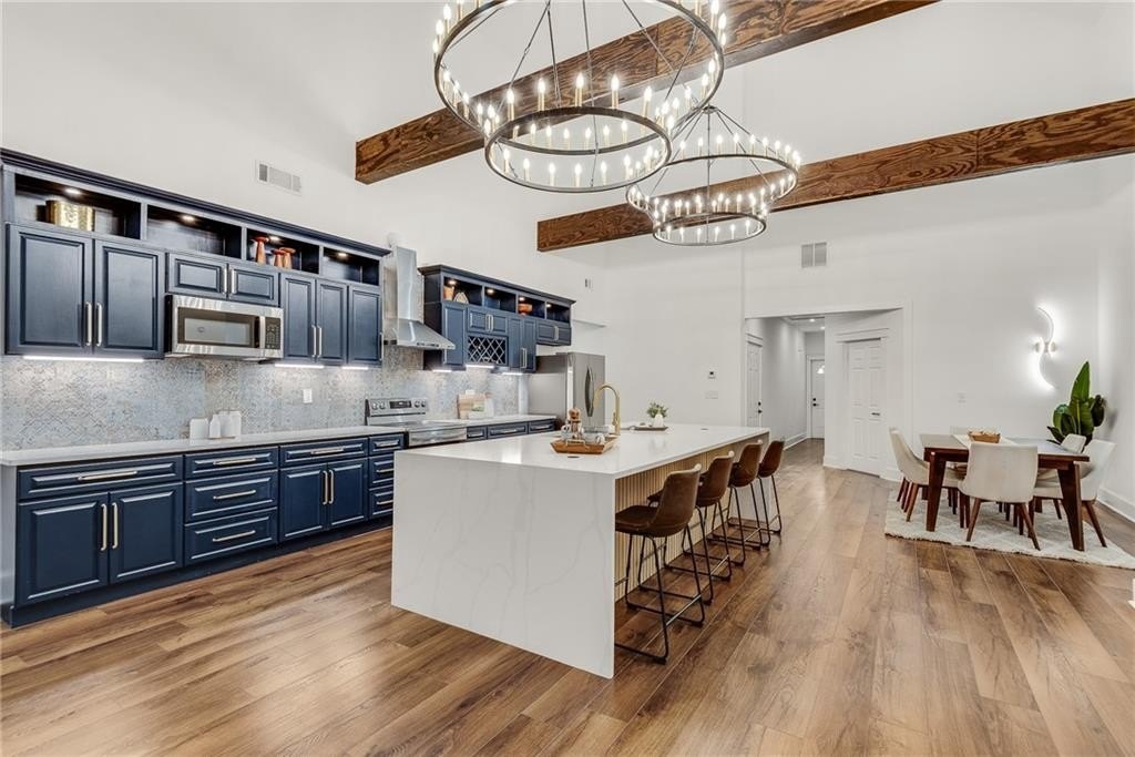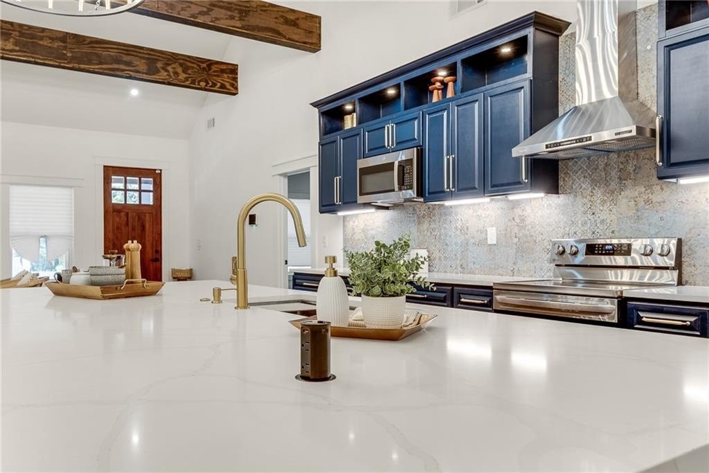 Beautiful New Construction in Historic Oakland City / West End on a corner lot with a rare 2 car garage, not far from the Lee and White Development with several breweries, restaurants, retailers and a food hall. This 4 Bedroom, 3.5 bathroom has the mix of modern and traditional style and is the perfect place to call home. The inside living/dining/kitchen features an open floor plan with clean lines, modern design and finishes, 20' vaulted ceiling in the kitchen/dining area with exposed wood beams. There are 9 foot ceilings in the rest of the home. You will love the built in electric fireplace in the LR on those chilly nights, plenty of light throughout the home and LVPF flooring in the front portion of the house. Enormous kitchen island that can seat 5 guests, quartz counter's, double stainless sink, and Point Pod countertop pop up outlets. Custom blue cabinetry add to the charm of this kitchen, all stainless appliances, under cabinet lighting, open shelves/wine rack, and plenty of designer lighting including two Wagon Wheel Farmhouse Chandeliers. The dining area is right near the kitchen, large pantry in the hall along with the half bath with designer tiles, large laundry room with separate sink and front loading washer/dryer. The large BR at front of home is a 2nd owners suite or guest suite with plenty of light, large closet, private bathroom with oversized shower/bench seat/tile floors with porcelain walls and dual shower heads. The two secondary bedrooms( wall to wall carpet) have double closets, designer ceiling fans, in the hall is the 3rd full bath with tub/shower combo and designer fixtures and dual vanities. You will love your primary bedroom, large walk in closet with built ins, fabulous en suite bath with dual vanities, oversized shower, dual shower heads, separate soaking tub, beautiful gold fixtures and elegant lighting with private water closet. There is a large deck off the primary bedroom ( also access to it from the hallway) to enjoy your morning coffee on which overlook's a fenced in backyard. The attached 2 car garage is located on the side of the home with plenty of space for two large SUV's. Get into this new construction in the West End which is "happening" now with some major investments coming soon!!