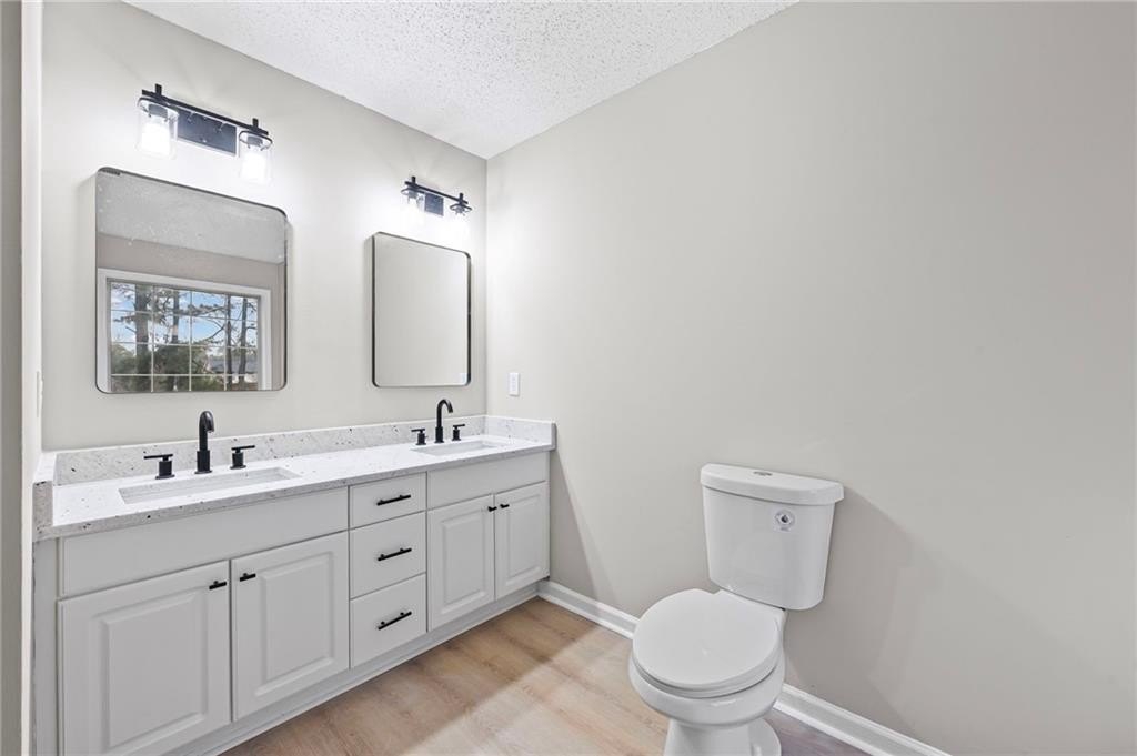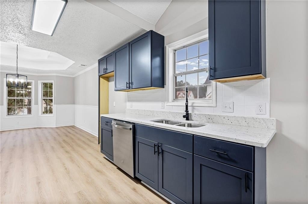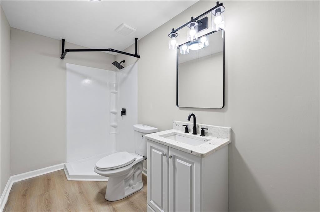 Stunningly renovated 5 bed/3 bath home featuring brand new Luxury Vinyl Plank flooring, new interior and exterior paint, brand new cabinets, new lighting and plumbing fixtures everywhere, new granite countertops in kitchen and bathrooms, and new stainless-steel appliances. Home offers beautiful curb appeal. Large living room offers vaulted ceilings, fireplace, and open floorplan views to the kitchen. Large kitchen offers tons of cabinet and countertop space, new stainless steel appliances, peninsula with overhang perfect for barstools, eat-in kitchen area, and separate dining room. Huge Master bedroom offers tray ceiling, walk in closet, and En-suite with double vanity, separate tub, and walk in shower. Two great sized secondary bedrooms on the main level and secondary bathroom with large vanity and tub/shower combo. Huge basement offers a big second living room/den, two bedrooms, and full bathroom. Out back the deck overlooks the large backyard waiting for your personal touches.