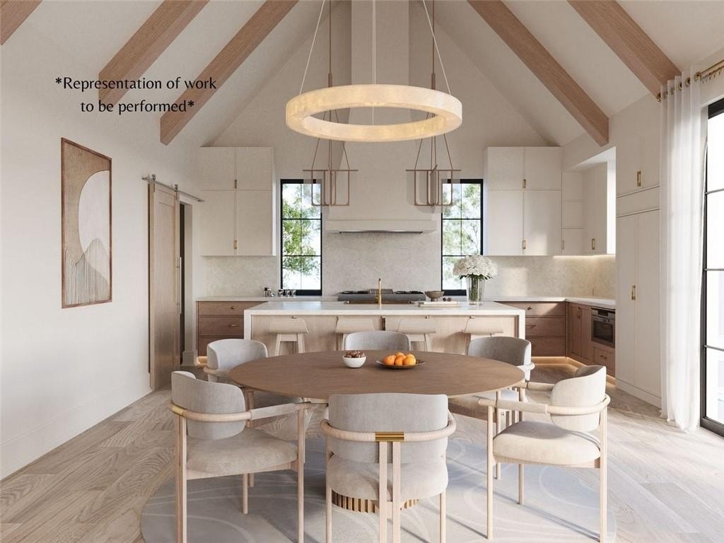 Ultra-luxury new construction on a private non-HOA lot within walking distance of Downtown Alpharetta. This home is thoughtfully designed with refined architecture, elevated finishes, and a private guest suite with its own living quarters or executive office and separate entrance. Completion is expected in March 2026. Inside, a stunning 22’ vaulted living, kitchen, and dining space creates an unforgettable first impression. The room features a wood-burning fireplace, custom inset white-oak cabinetry, premium Taj Mahal Quartz, Italian alabaster/marble lighting, Wolf/Sub-Zero/Cove appliances, and a beautifully executed pantry. Every cabinet in the home is fully custom with dovetail drawers and Blum hardware, paired with 9.5” European white-oak flooring. The primary suite offers a serene retreat with a steam shower and a boutique-style closet with LED lighting, glass-front cabinetry, and a glass-topped island. The finished terrace level adds 10’ ceilings, a guest bedroom, a concrete encased safe room/storm shelter, a fully equipped home theater, a home gym with a built in infrared red light sauna and shower/cold plunge, and direct walkout access to a private pool and spa. The backyard and side yard extends further to wooded greenspace for complete privacy. Above the garage, a separate guest apartment includes a full kitchen, secondary master bedroom, bathroom, closet, and private entrance—perfect for extended family or a dedicated office. Additional features include upgraded high-efficiency HVAC, spray-foam insulation, three oversized garages with 10’×9’ doors, motorized blinds, built-in indoor and outdoor speakers, and integrated security cameras. *Renderings are a representation of work to be performed.*