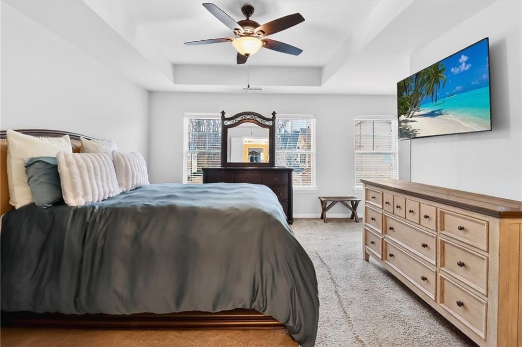 Welcome to this stunning two-story freshly painted home featuring 3 spacious bedrooms and 2.5 baths, perfectly designed for comfort and convenience. All bedrooms and the laundry room are located on the upper level, while a well-placed half bath serves the main floor. Upper level is carpeted throughout. The spacious master suite includes a comfortable sitting area and a well-appointed ensuite bath.