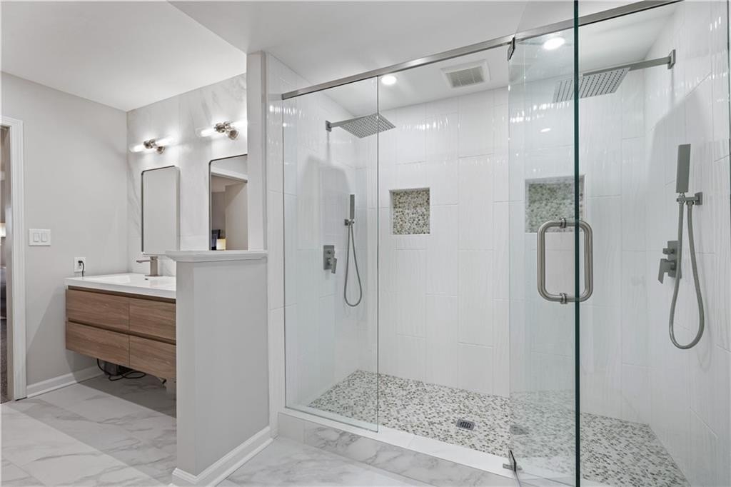 Magnificent Mid-century modern meets Lake Tahoe. Tired of boring cookie-cutter homes? Well then it’s time to Come home to your Rocky Mountain Retreat inspired by Iconic Tahoe architecture, all in the heart of the Sandy Springs Park District.. AND NEWLY ZONED FOR HEARDS FERRY ELEMENTARY!! ************************ OVER $250,000 IN UPGRADES include a fully reimagined kitchen featuring all-new custom cabinetry, elegant Quarts countertops, a massive double-sided Fisher & Paykel Fridge, partnered with a Gordon Ramsey dream 8-burner DSC gas range! The kitchen opens seamlessly to an impressive wall-of-windows family room, adorned w/ rare Pecky Cyprus walls, evoking the warmth and charm of a cozy ski lodge. ********************************* Tucked away on a private ¾-acre lot, with a “grand valley view”, this one-of-a-kind home backs up to a serene, wooded backdrop that feels like your own personal escape — a true vacation-at-home experience. *************************. The brand-new primary bath is a spa retreat with a sexy oversized shower, sleek floating vanity, and designer fixtures for a modern, luxurious feel. ALL THREE SECONDARY baths have also been recently renovated. The light-flooded, totally renovated terrace level offers exceptional versatility and can easily serve as an in-law suite, teen retreat, home office, or entertainment space. NO cheap drop ceiling here! … featuring custom “double-milled” Red Cedar ceiling and “Seamless” Ultra-Modern "invisible" doors...AND A newly renovated bath, this lower level is fantastic! ****************************** Although the TOP-TO-BOTTOM renovation on this dramatic home is comprehensive, the Mid-Mod enthusiast will appreciate the many preserved mid-century accents such as the Geometrical front door and lock, space-age kitchen light fixture and many exotic wood accents and stone elements. ***************************** Perfectly located between two of Sandy Springs’ signature parks—soon to be connected by sidewalks—enjoy trail running, hiking, and outdoor adventures at the 24-acre Lost Corner Nature Preserve, or walk to Abernathy Greenway Park for family fun. *************************** Optional membership is available at Mark Trail Swim & Tennis (located inside the Seville Chase neighborhood) for swimming, tennis, and pickleball enthusiasts. ************************* Zoned for North Springs High School, the only high school in Georgia offering a dual magnet program in Math & Science and Performing Arts, with a brand-new $177 million, state-of-the-art campus set for completion in August 2027.
