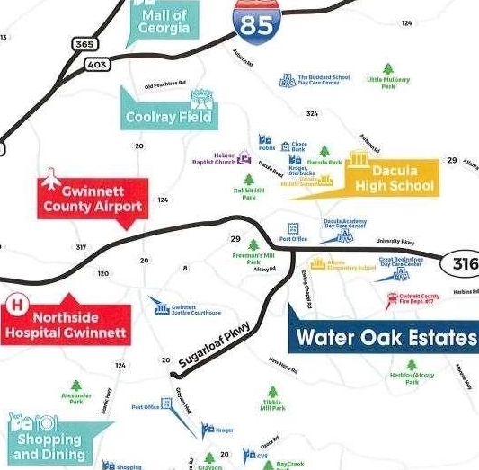 This Impressive Two-Story Hampshire Plan facing north at Water Oak Estates! Lot 98, 3110 sqft. Guest/Full Bath on Main! Don't miss this incredible opportunity to own 4Bed/3b home, Point of Interest: Kroger and Publix within 2miles, Several Parks featuring Aquatic center, Sports fields, Picnic areas and Community centers, Flying -Disc Golf course, Trails, Fishing, Horseshoe pit and Playground. 4.7 star rating on google maps. Downtown Lawrenceville Lawn - City Park known for summer events, Middle and High School Dacula, Alcova Elementary. Mall of Georgia, Costco, Your pick of Restaurants all within minutes from your new home. SMART HOME FEATURES INCLUDED: Experience the future with our Smart Home Package for ultimate convenience and peace of mind. MAIN LEVEL LIVING: Enjoy the flexibility of a bedroom and full bath on the main level, perfect for guest or multi- generational living. Elegant Design: Two Story Foyer, Coffered ceiling in the Dining room, 2" Wood Faux Blinds, Fireplace in Family room open to Kitchen and Dinette area. Owner Suite: Oversize Owner Suite includes Sitting area to relax, Double Sinks and separate Shower and Soaking Tub. Huge Closet. Gourmet Kitchen: Stunning Quartz Island, Stainless Whirlpool Appliances Luxury Flooring- Revwood Mohawk flooring throughout, Tile in Bathrooms and Laundry Room, Outdoor Living: Relax on your 10x24 Covered porch with ceiling fans included. Too Many Options to List:- Must See it to believe it! Community Amenities: Enjoy the resort-style lifestyle with access to the community Club House, Swimming Pool, Tennis Courts, and Kiddie Park! Call for details! Stock Photo's