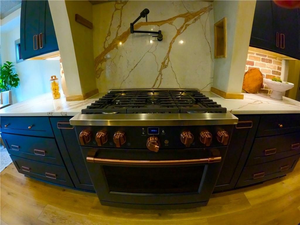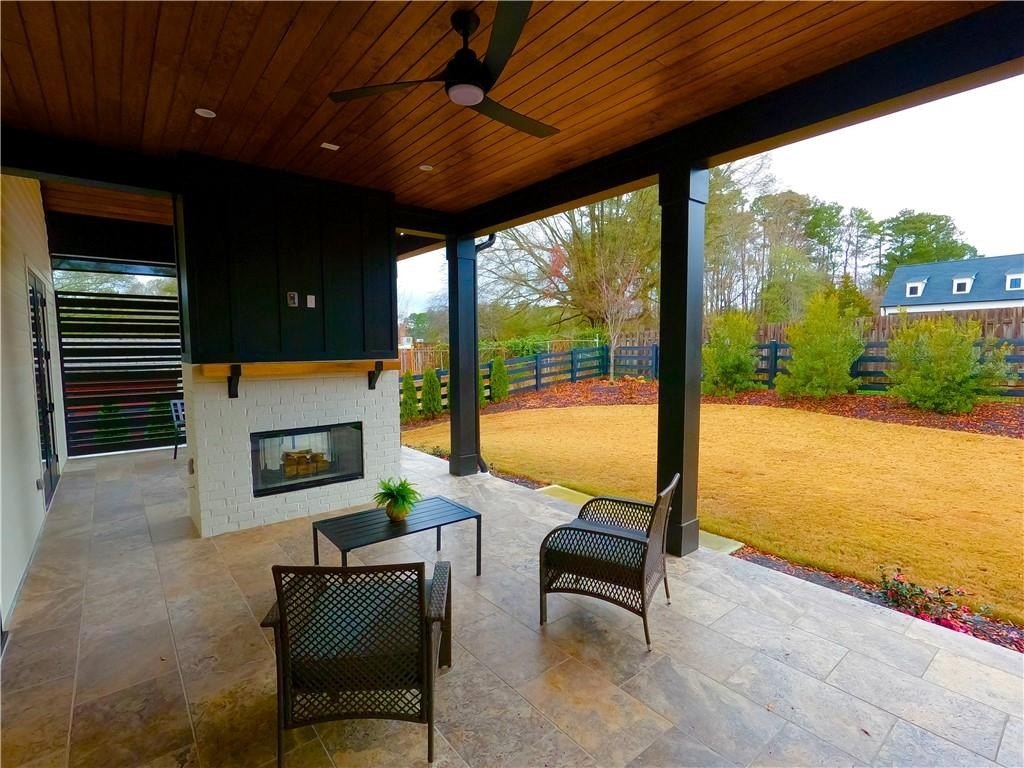 And then there’s the outdoor living space. The back porch is built to be enjoyed year-round, with a built-in grill, tons of prep space, and a fireplace that brings cozy charm to every season. The yard has been thoughtfully landscaped for beauty, privacy, and space to play, unwind, or garden.