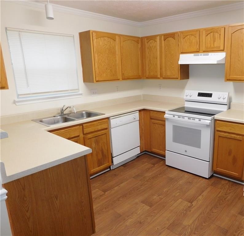 This home invites you from a covered front porch into a 2 story open hardwood foyer and formal dining room. The main floor has kitchen with new stove, new range hood, dishwasher, disposal & breakfast area (no refrigerator included in sale). Large family room with gas starter fireplace and ceiling fan. Half bath and laundry room with washer/dryer hook-ups. Upper level has 3 spacious spare bedrooms and full hall bath with tub/shower combination. Large master trey ceiling, ceiling fan and spacious walk-in closet. The master bath features dual vanities with soaking tub and separate shower. Main floor access to the rear patio and hall access to the 2-car front entry garage with auto-opener. Fresh interior paint. New carpet. Close proximity to shopping and dining, golf course and Stone Mountain Highway/Highway 78. Investor owned. Property being sold 'as-is' with no Seller's Disclosure.