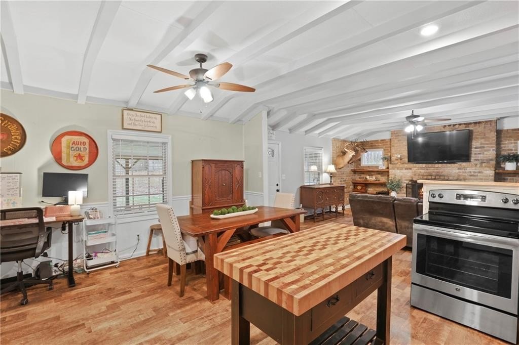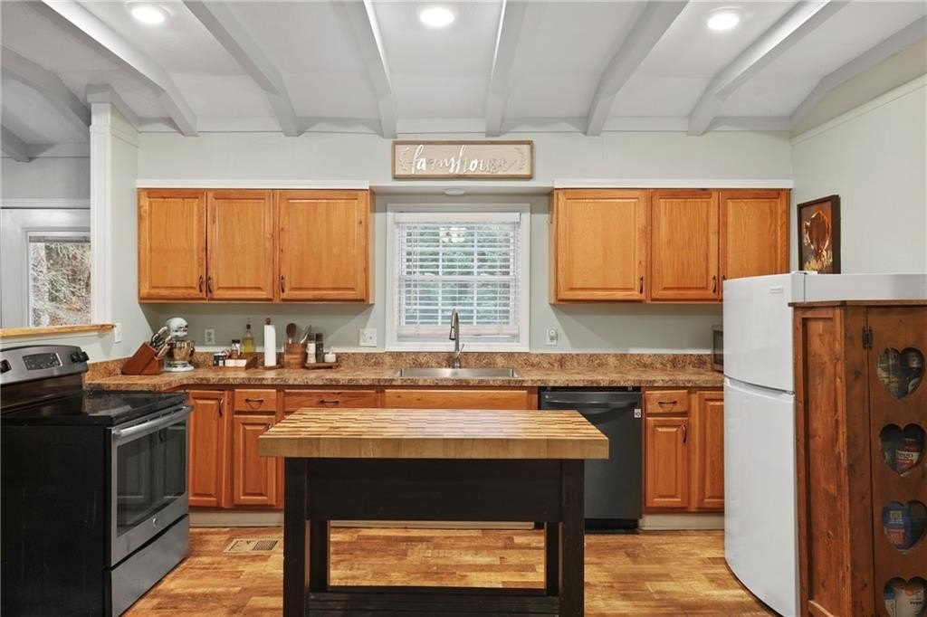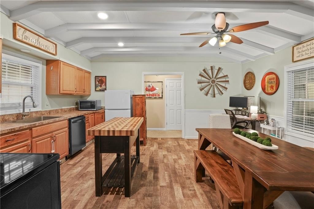 Welcome to the cutest two bedroom, two bath ranch on a basement sitting on approximately 1.5 private acres in Dallas, Georgia. This charming home offers the peaceful homestead lifestyle so many buyers are searching for, with the perfect blend of acreage, privacy and convenience. The rocking chair front porch sets the tone the moment you arrive, giving you a warm and welcoming first impression that feels like home. Inside, the cozy living room features a beautiful wood burning fireplace that creates the perfect setting for fall and winter nights. Natural light fills the home and highlights the inviting layout just waiting for your personal touch. The oversized back deck overlooks the fenced in backyard, offering peaceful views of your land and plenty of space for morning coffee, weekend grilling or relaxing in total privacy. This property is ideal for raising chickens, goats or creating your dream garden space. The land is usable, private and provides the freedom to build the homestead lifestyle you’ve always wanted. The daylight basement is a huge bonus, complete with a finished rec room for additional living space plus a boat door and tons of potential. With room to finish even more square footage, this space could easily support a future third bedroom, bathroom, workshop, storage or a completely separate living area. The possibilities are endless for anyone needing extra space or looking to add value. If you’ve been searching for space, charm and a property that can grow with you, this little slice of paradise is the opportunity you’ve been waiting for.