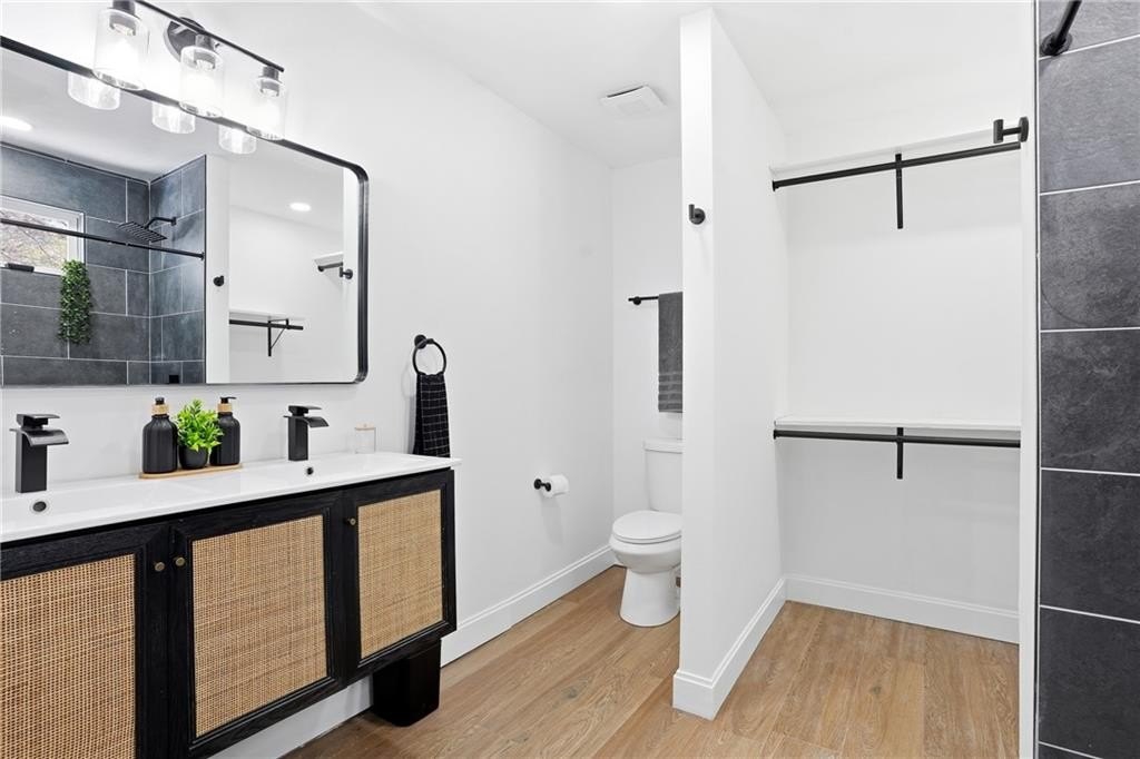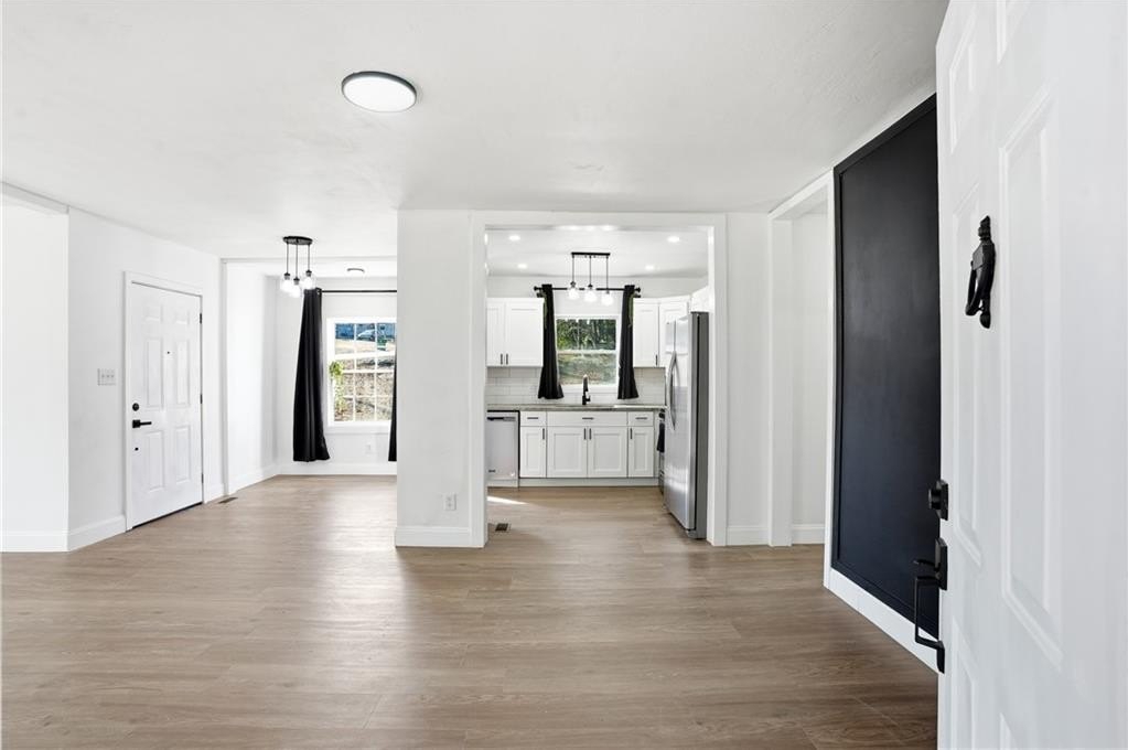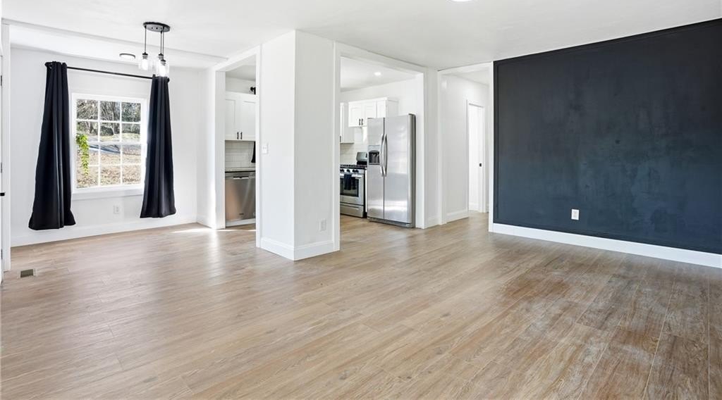 Walk into this completely Renovated Ranch in the heart of Downtown Austell! Farmhouse Style Covered Front Porch welcomes you into the Open Concept Floor Plan. As you step inside a Beautiful Accent Wall greets you with a view into a Stunning Modern Kitchen. The Open Living Area offers upgraded lighting, while the dining room flows into a Beautifully Updated Kitchen with Stone Counters, Bright white cabinets, and Stainless Steel Appliances. Enjoy the low-maintenance LVP flooring—no carpet anywhere! Both Bathrooms have been remodeled with Black Matte Finishes throughout. Large Owner’s Bedroom with the Master Bathroom featuring Sleek Black Matte Fixtures, Double Sink Vanity with Designer Mirror, and an Elegant Tiled Shower. Do not forget the Large Walk in Closet! The laundry nook features plenty of space for a Washer/Dryer. The Master also comes with walk out access to Private Porch. The buyer will not have to worry about any big ticket items, the home comes with a New Roof, New Windows, New HVAC, & New Water Heater. The Corner lot, offers privacy and plenty of space for any entertaining. The property is close to Shopping, Eateries, Parks & Easy Access to I-20. Come out today and make this home yours!