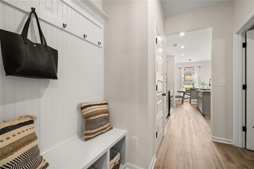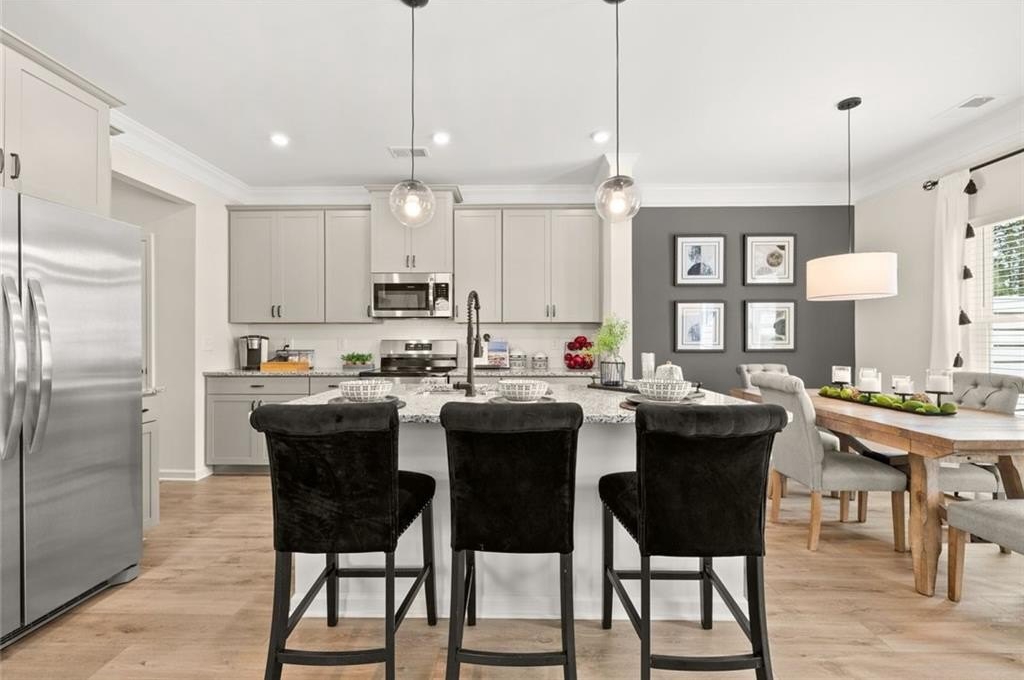 Move in Ready December! The Norwood II plan, located in Smith Douglas Homes, Sanders Park community. This end unit 3BR/2.5BA townhome has an Owner's entrance that offers entry directly into the kitchen providing convenient access for putting away those groceries! The kitchen has a center island, upgraded 42" upper cabinetry for additional storage, granite countertops with a tile backsplash and dining area overlooking the family room that features a sleek linear fireplace. Vinyl plank floors on main living area on first story and laundry room and bathrooms on second story. Light-filled entry with 3/4 glass front door! The second story is accessible via the open iron rail staircase leading to a loft area suitable for a desk/home office work station, a laundry room, two secondary bedrooms with a shared bath and the primary suite with a tray ceiling and tile shower. Nine ft ceiling heights on both levels. Planned neighborhood pool and the lawn maintenance included in your HOA fees leaves you more time to do the things you enjoy! Photos are representative of plan not of actual home. Seller incentives with the use of preferred lender.
