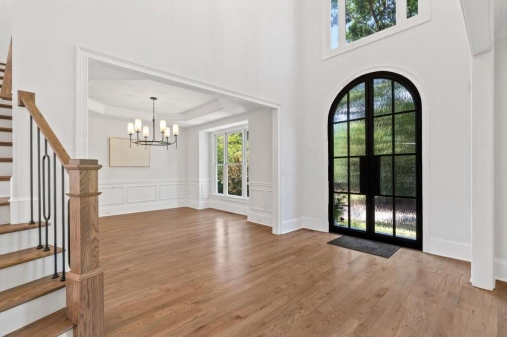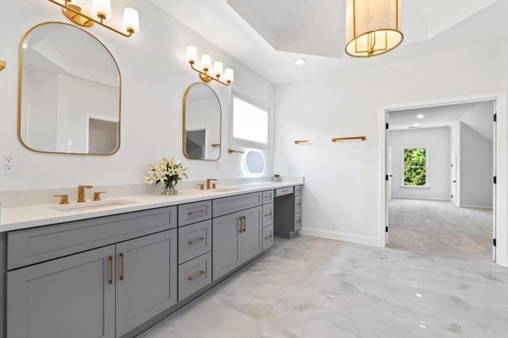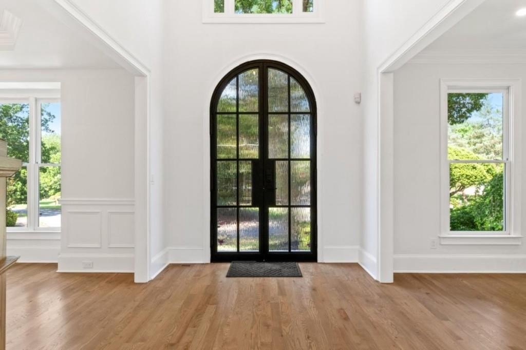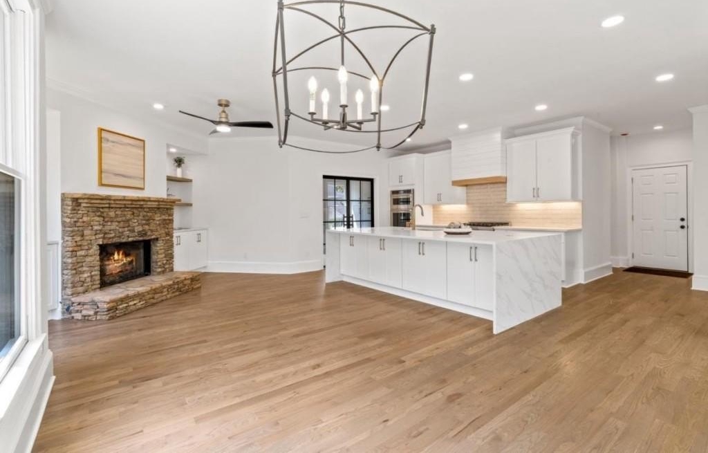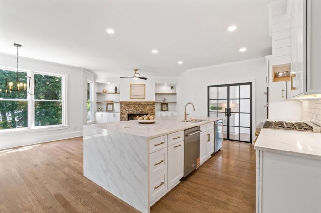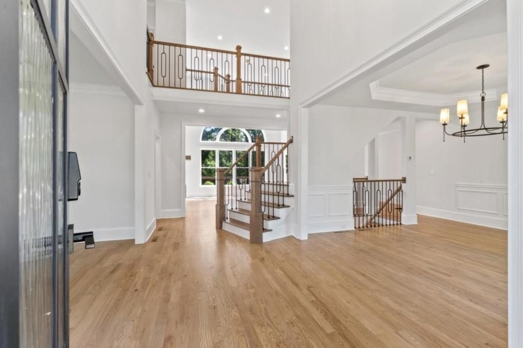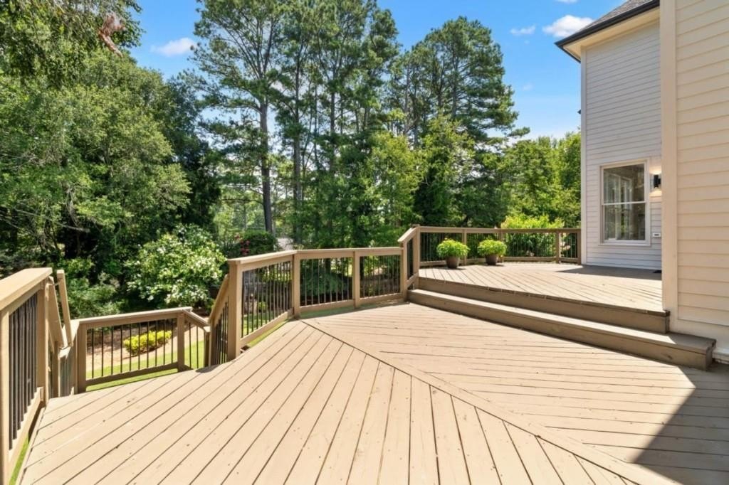 This luxuriously remodeled home offers all the looks and feel of new construction, ideally located just minutes from Roswell, Alpharetta, and Milton town squares, as well as Highway 400. Nestled in one of Roswell's most desirable communities and locations, this elegant residence begins with double, full-arched iron doors opening into a bright, two-story foyer, where refinished hardwoods, modern banisters, and open sightlines to the terrace level immediately impress. The main level features a sophisticated formal living room, dining room, and a sun-filled family room with Palladian windows and a sleek, modern fireplace. The showstopping kitchen includes top-of-the-line appliances, two dishwashers, an expansive island with soft-close cabinetry on both sides, and a scullery-style pantry with tall storage cabinets, prep space, and a secondary sink. The adjacent keeping room offers a cozy fireplace with custom built-ins, while the sunlit family room overlooks a professionally landscaped backyard filled with azaleas, mature shrubs, and Japanese maples-with easy access to the oversized entertaining deck. A main-level bedroom with refinished hardwoods and a beautifully remodeled full bath offers ideal guest accommodations or a quiet office setup. Upstairs, the primary suite is a true retreat, featuring hardwood floors, a fireplace with custom cabinetry, views of the serene backyard, access to an expansive laundry area, and a spa-inspired bathroom with a generous wet room, oversized soaking tub, multiple showerheads, and a luxury smart bidet toilet with heated seat, dryer, and advanced features. The suite also includes a massive walk-in closet with dedicated storage for luggage and seasonal items. Three additional bedrooms and one beautifully updated bathroom complete the upper level. The terrace level offers incredible flexibility with space for extra bedrooms or dual family/media areas, a wet bar, abundant storage, a full bathroom, and access to a covered patio. Additional upgrades include designer lighting, updated hardware, multiple high-efficiency windows, new carpet in secondary bedrooms, and refinished hardwoods throughout. This move-in-ready home is a rare combination of refined design and modern functionality in one of North Atlanta's most sought-after neighborhoods.