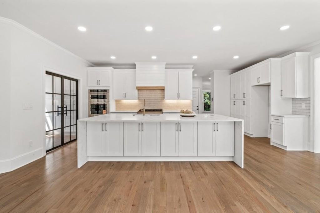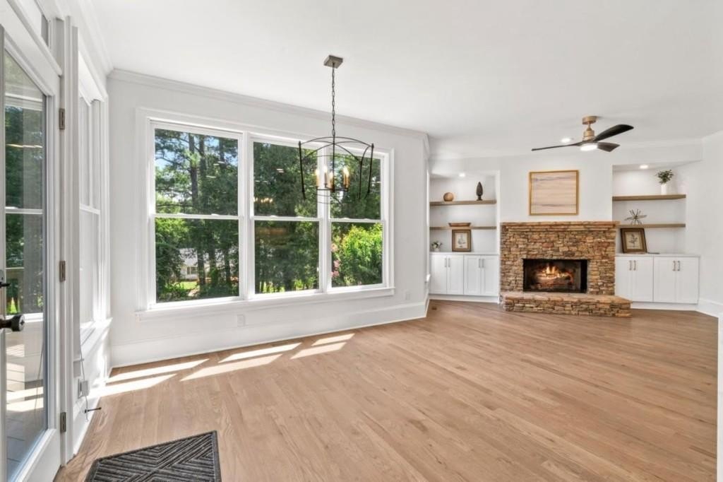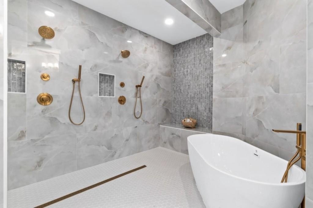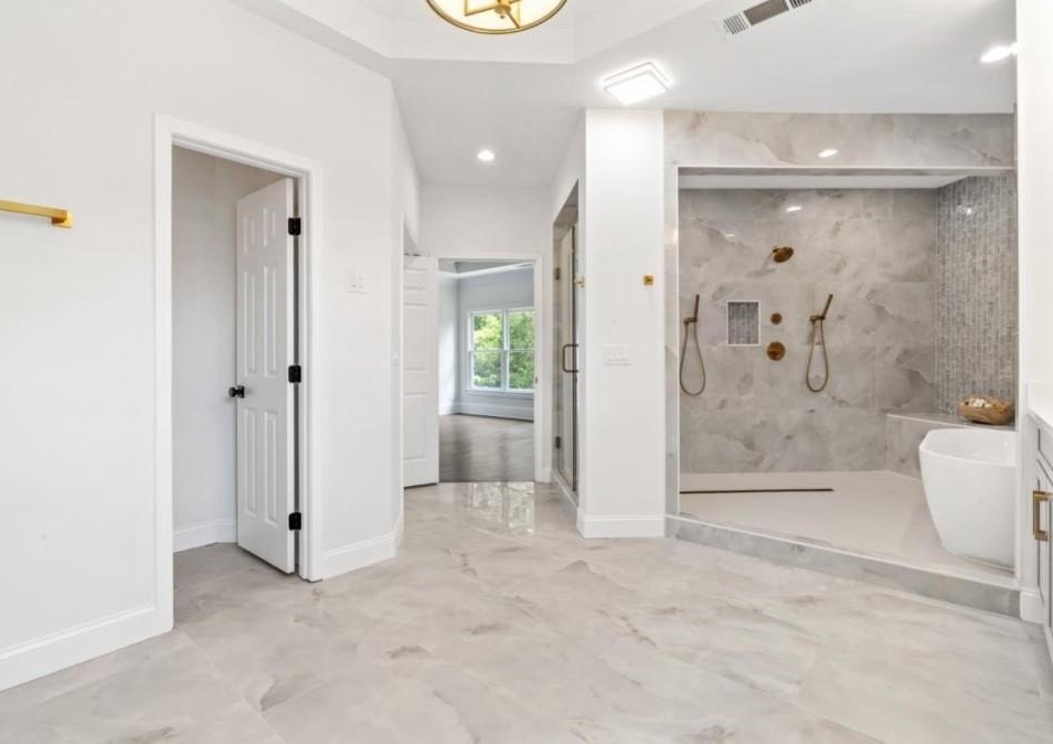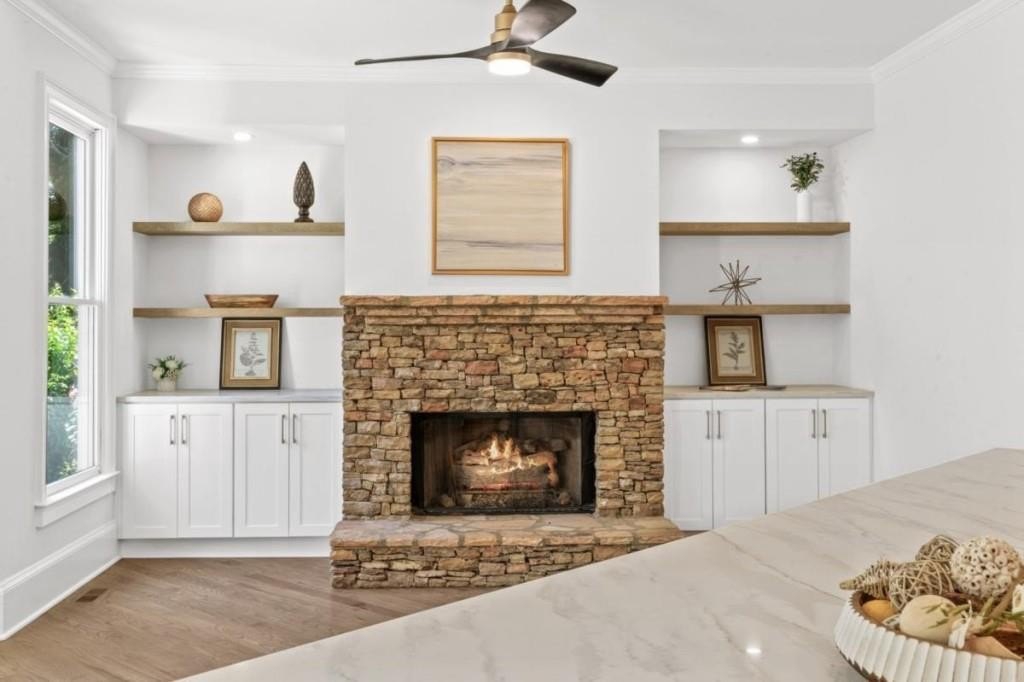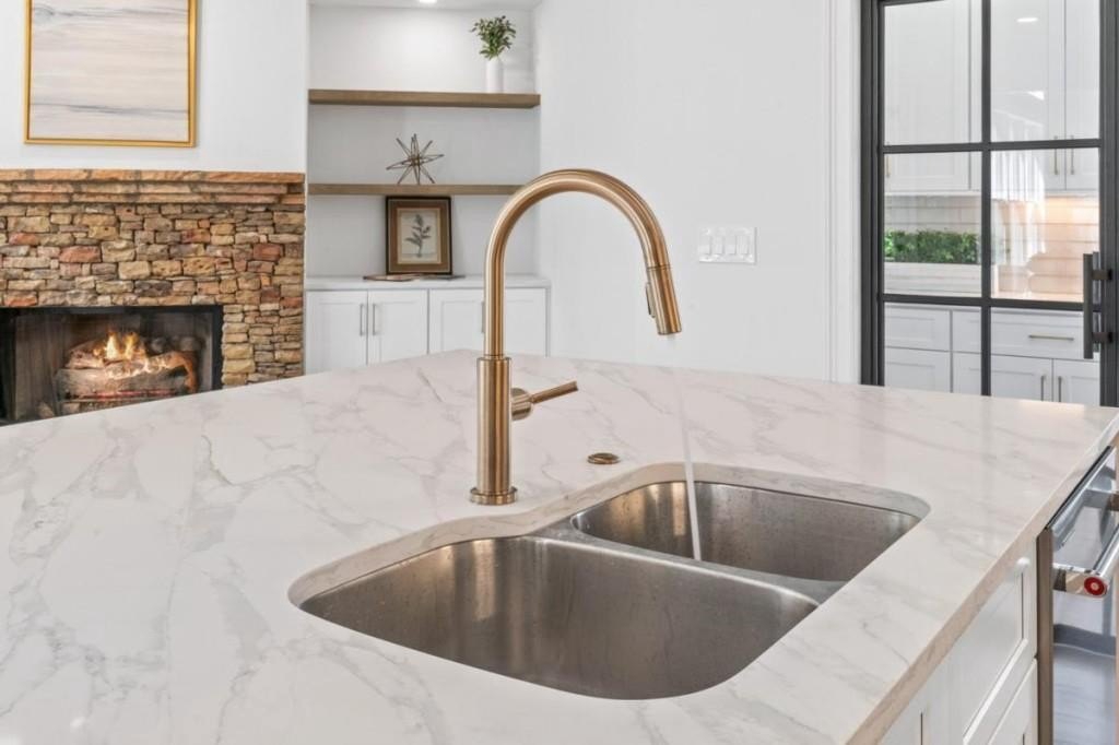 This luxuriously remodeled home offers all the looks and feel of new construction, ideally located just minutes from Roswell, Alpharetta, and Milton town squares, as well as Highway 400. Nestled in one of Roswell's most desirable communities and locations, this elegant residence begins with double, full-arched iron doors opening into a bright, two-story foyer, where refinished hardwoods, modern banisters, and open sightlines to the terrace level immediately impress. The main level features a sophisticated formal living room, dining room, and a sun-filled family room with Palladian windows and a sleek, modern fireplace. The showstopping kitchen includes top-of-the-line appliances, two dishwashers, an expansive island with soft-close cabinetry on both sides, and a scullery-style pantry with tall storage cabinets, prep space, and a secondary sink. The adjacent keeping room offers a cozy fireplace with custom built-ins, while the sunlit family room overlooks a professionally landscaped backyard filled with azaleas, mature shrubs, and Japanese maples-with easy access to the oversized entertaining deck. A main-level bedroom with refinished hardwoods and a beautifully remodeled full bath offers ideal guest accommodations or a quiet office setup. Upstairs, the primary suite is a true retreat, featuring hardwood floors, a fireplace with custom cabinetry, views of the serene backyard, access to an expansive laundry area, and a spa-inspired bathroom with a generous wet room, oversized soaking tub, multiple showerheads, and a luxury smart bidet toilet with heated seat, dryer, and advanced features. The suite also includes a massive walk-in closet with dedicated storage for luggage and seasonal items. Three additional bedrooms and one beautifully updated bathroom complete the upper level. The terrace level offers incredible flexibility with space for extra bedrooms or dual family/media areas, a wet bar, abundant storage, a full bathroom, and access to a covered patio. Additional upgrades include designer lighting, updated hardware, multiple high-efficiency windows, new carpet in secondary bedrooms, and refinished hardwoods throughout. This move-in-ready home is a rare combination of refined design and modern functionality in one of North Atlanta's most sought-after neighborhoods.
