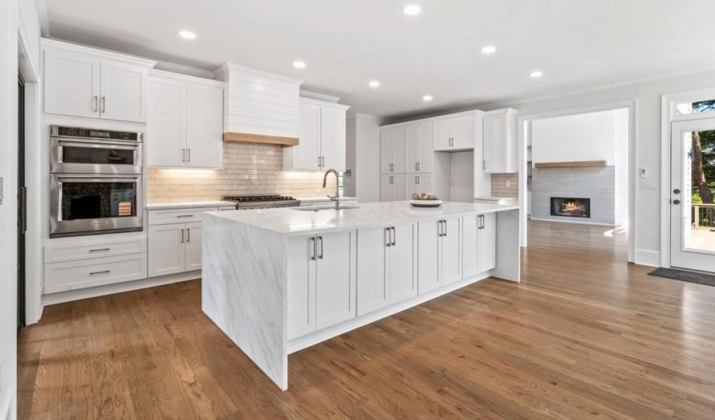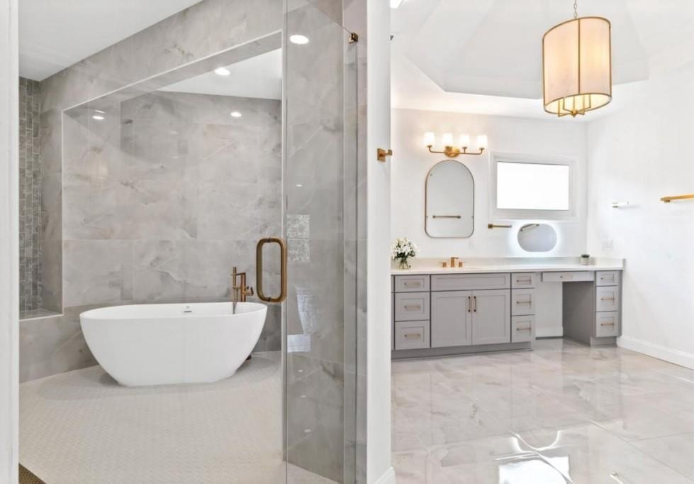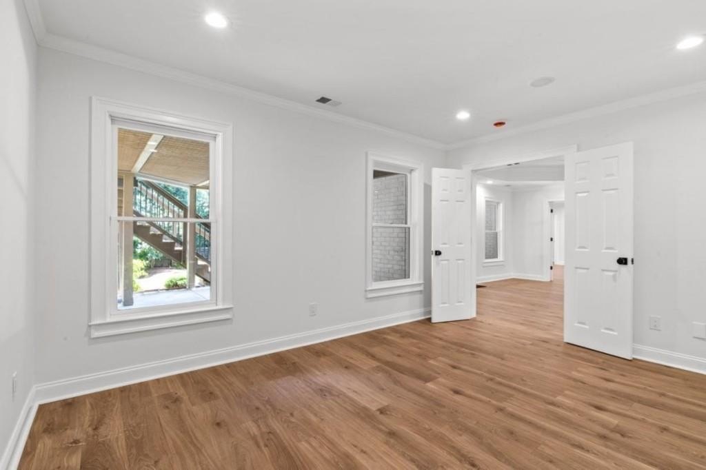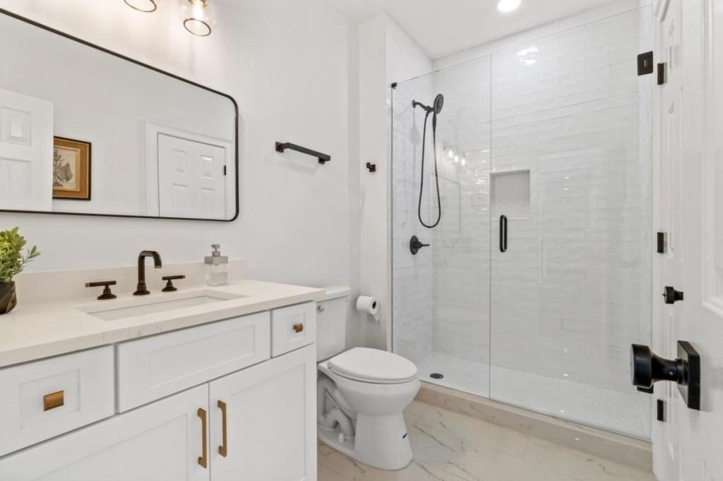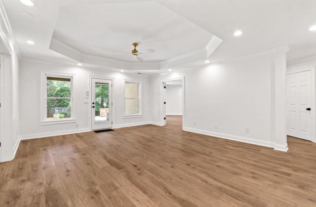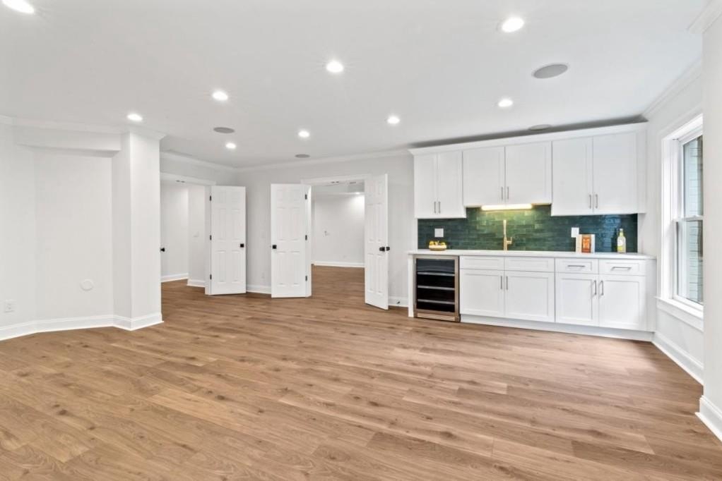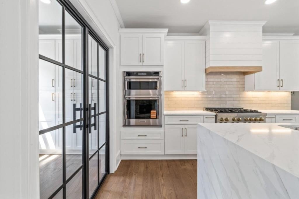 This luxuriously remodeled home offers all the looks and feel of new construction, ideally located just minutes from Roswell, Alpharetta, and Milton town squares, as well as Highway 400. Nestled in one of Roswell's most desirable communities and locations, this elegant residence begins with double, full-arched iron doors opening into a bright, two-story foyer, where refinished hardwoods, modern banisters, and open sightlines to the terrace level immediately impress. The main level features a sophisticated formal living room, dining room, and a sun-filled family room with Palladian windows and a sleek, modern fireplace. The showstopping kitchen includes top-of-the-line appliances, two dishwashers, an expansive island with soft-close cabinetry on both sides, and a scullery-style pantry with tall storage cabinets, prep space, and a secondary sink. The adjacent keeping room offers a cozy fireplace with custom built-ins, while the sunlit family room overlooks a professionally landscaped backyard filled with azaleas, mature shrubs, and Japanese maples-with easy access to the oversized entertaining deck. A main-level bedroom with refinished hardwoods and a beautifully remodeled full bath offers ideal guest accommodations or a quiet office setup. Upstairs, the primary suite is a true retreat, featuring hardwood floors, a fireplace with custom cabinetry, views of the serene backyard, access to an expansive laundry area, and a spa-inspired bathroom with a generous wet room, oversized soaking tub, multiple showerheads, and a luxury smart bidet toilet with heated seat, dryer, and advanced features. The suite also includes a massive walk-in closet with dedicated storage for luggage and seasonal items. Three additional bedrooms and one beautifully updated bathroom complete the upper level. The terrace level offers incredible flexibility with space for extra bedrooms or dual family/media areas, a wet bar, abundant storage, a full bathroom, and access to a covered patio. Additional upgrades include designer lighting, updated hardware, multiple high-efficiency windows, new carpet in secondary bedrooms, and refinished hardwoods throughout. This move-in-ready home is a rare combination of refined design and modern functionality in one of North Atlanta's most sought-after neighborhoods.