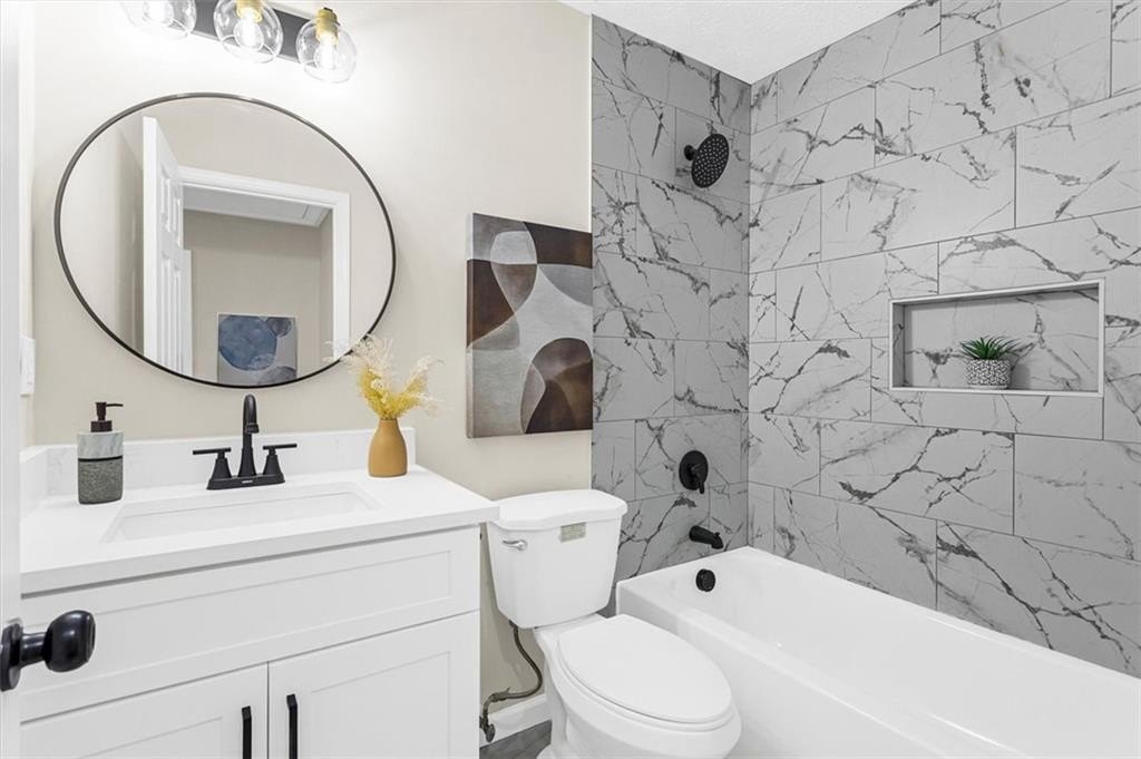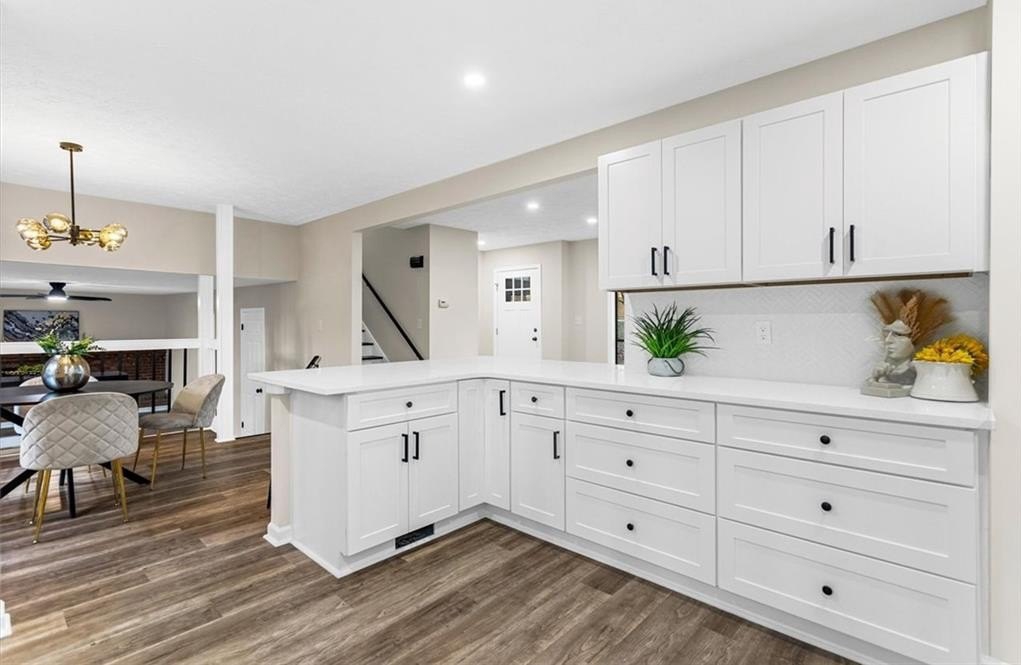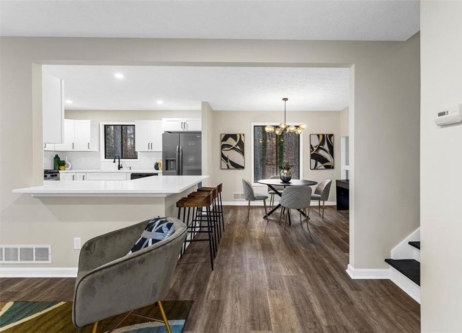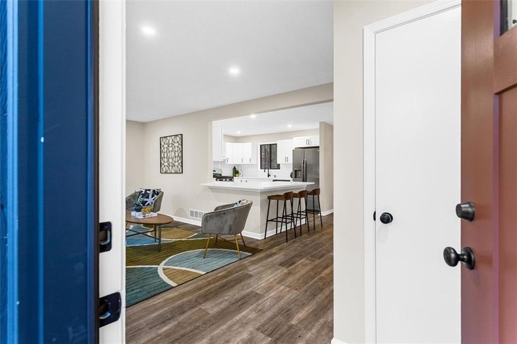 Step into the open-concept main level, featuring a bright living area, cozy dining room and a fully updated kitchen. The spacious kitchen has plenty of storage space for all your cooking gadgets, with quartz countertops, soft-close white shaker cabinets, and stainless steel appliances—this is the perfect kitchen for entertaining and everyday living.