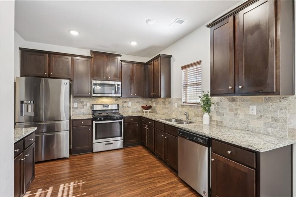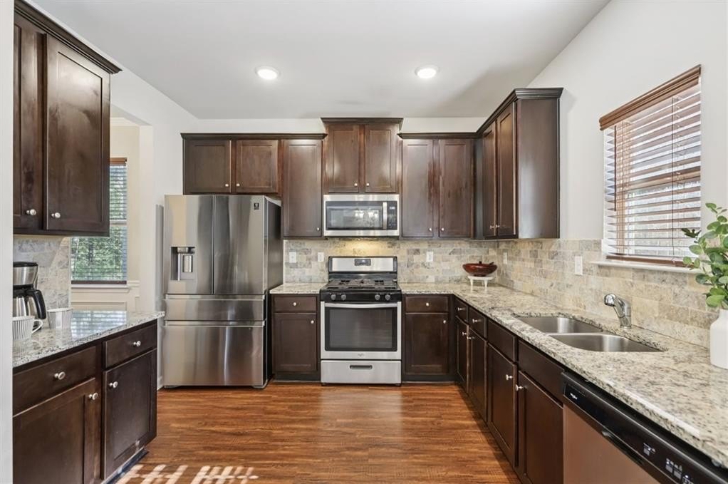 Welcome to this spacious & stylish beautiful 2 story traditional home with 4 bedrooms, 2.5 baths perfectly situated on a cul-de-sac on one of the larger lots in the neighborhood conveniently located by the pool. Spacious. Stylish. Smart. This home checks all the boxes and offers more than just great square footage—it gives you smart layout, quality finishes, and room to grow. Step inside and you are greeted by hardwood floors that flow throughout the main level, stairs, and upstairs hall. The heart of the home is the open-concept kitchen and living space. The chef’s kitchen includes granite counters, tile backsplash, a gas range, walk-in pantry, and a built-in coffee bar. There’s plenty of cabinet space with room to cook together. The eat-in area connects directly to the living room, where a gas fireplace adds warmth and character. This layout gives you line-of-sight throughout the main floor—ideal for everyday life or entertaining a crowd. Host holidays in the formal dining room is perfect for large family gatherings and entertaining. A flex room on the main level provides space for an office, guest bedroom, home schooling, sitting room or playroom. Upstairs, you’ll find an oversized owner’s suite with a beautiful double tray ceiling, a large walk-in closet, and a spa-style bath. Enjoy the luxury of a soaking tub, large separate shower, and double vanities—your own peaceful space at the end of the day. Three additional bedrooms share a full bath, each with generous closet space and room to make it your own. The full daylight basement is already stubbed for a bathroom and framed, giving you the head start to build out an additional bedroom, movie room, game space, or in-law suite—whatever you need, it’s ready for it. The unfinished basement is already stubbed and framed—ready for your movie room, guest suite, game space, or gym. Outside, the extended deck has stairs down to a backyard with only one side neighbor. Enjoy the convenience of walking to the neighborhood pool. Located minutes from downtown Canton, shopping, restaurants, and easy access to I-575, this location gives you the feel of a tucked-away community with the convenience you want. If you’ve been looking for space, style, and a solid value in Canton—this is it. Schedule your showing today!