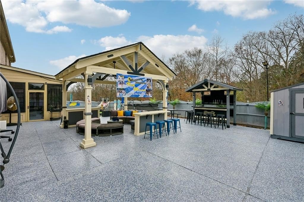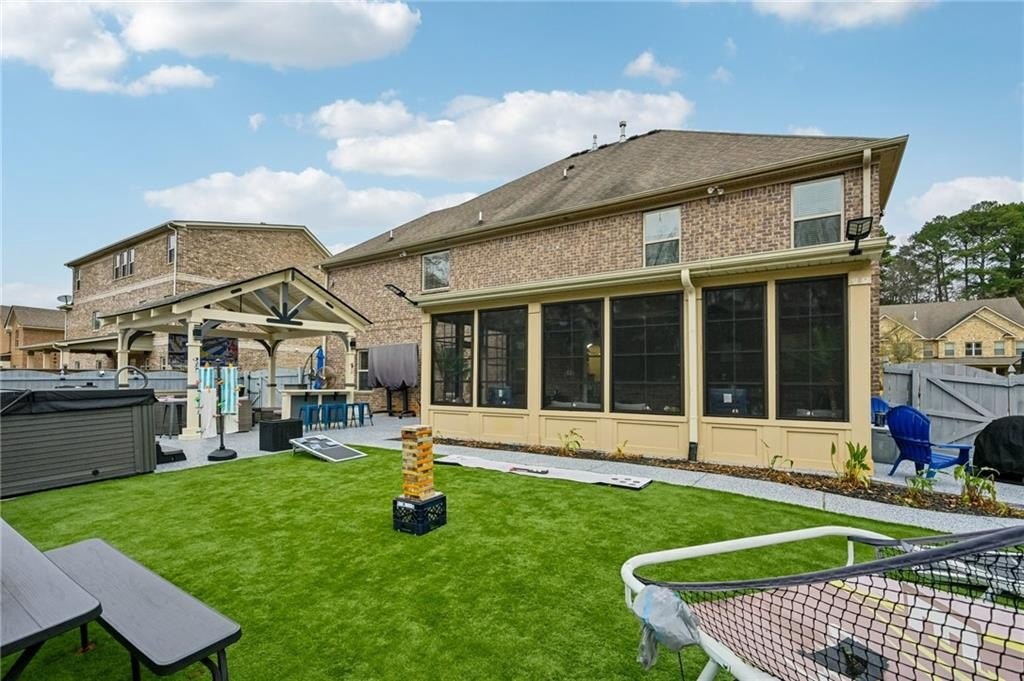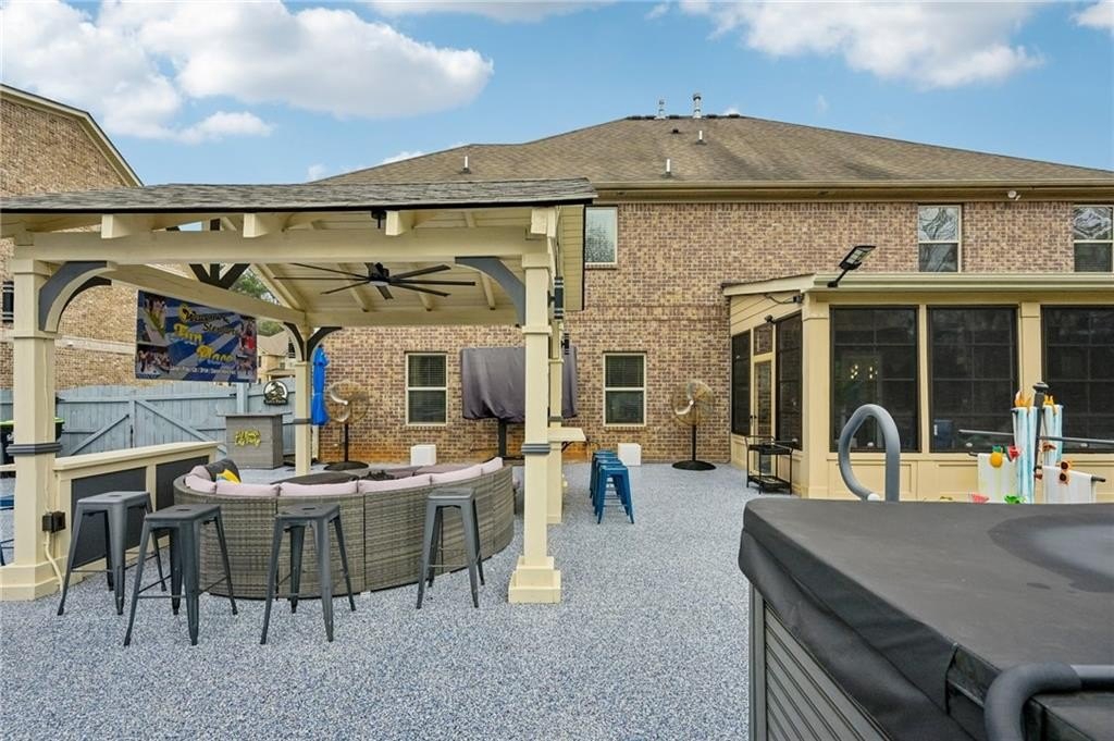 Welcome to this stunning, 4-sided brick, craftsman style home in the highly sought after Willshire Park Subdivision. Step inside to a dramatic vaulted 2-story foyer with a huge separate formal dining room with coffered ceiling, elegant light fixtures and a beautiful accent wall. The spacious open floorplan is filled with natural light and beautiful custom flooring throughout the main level, offering upscale comfort and flexibility to accommodate a variety of lifestyles. Enjoy cooking your favorite meals in the gourmet eat-in kitchen featuring an oversized island, granite countertops, stainless steel appliances, double oven, plenty of white cabinets, walk-in pantry and a butler pantry. This kitchen is a chef’s delight with all the bells and whistles and opens to the spacious dining and family room areas with custom accent walls and a centerpiece stone fireplace, perfect for entertaining or relaxing. A beautiful spacious guest bedroom suite with glass shower/tub combo completes the first floor. Retreat upstairs to the oversized owner’s suite with huge sitting area, trey ceilings and two large walk in closets. Unwind and refresh yourself in the spa bath with double vanities, soaking tub, and large stand-alone glass shower. Family and guests can enjoy three additional large bedrooms, two with their own bath en-suites. One additional full bath and laundry room completes the upstairs. Step outside to the private backyard oasis featuring a large enclosed patio, hot tub, bar, storage house, privacy fence, a huge gazebo with plenty of seating, and a turfed area for recreation. The garage is currently used as a game/media room complete with an electronic screen and door if you are entertaining. It can still be used as a traditional two car garage. The huge driveway and parking pads can accommodate 18 cars. This beauty is designed for those who value space, versatility and comfort. Whether you're looking to grow, host or simply spread out, this home delivers on all fronts. ALL FURNITURE IS NEGOTIABLE. Seller is downsizing. Don’t miss out, schedule your showing today!