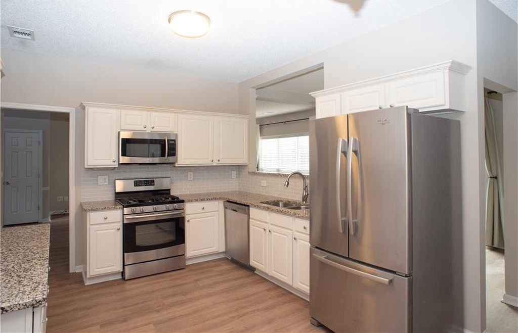 This spacious and beautifully maintained home sits on a quiet cul-de-sac in one of Atlanta’s most desirable areas. The bright main level features a white kitchen with stainless steel appliances, a glass tile backsplash, recessed lighting, and a dedicated dining room adjacent to the large family room, complete with a cozy fireplace and floor-to-ceiling windows.