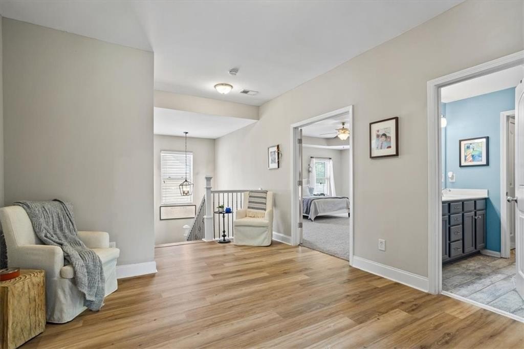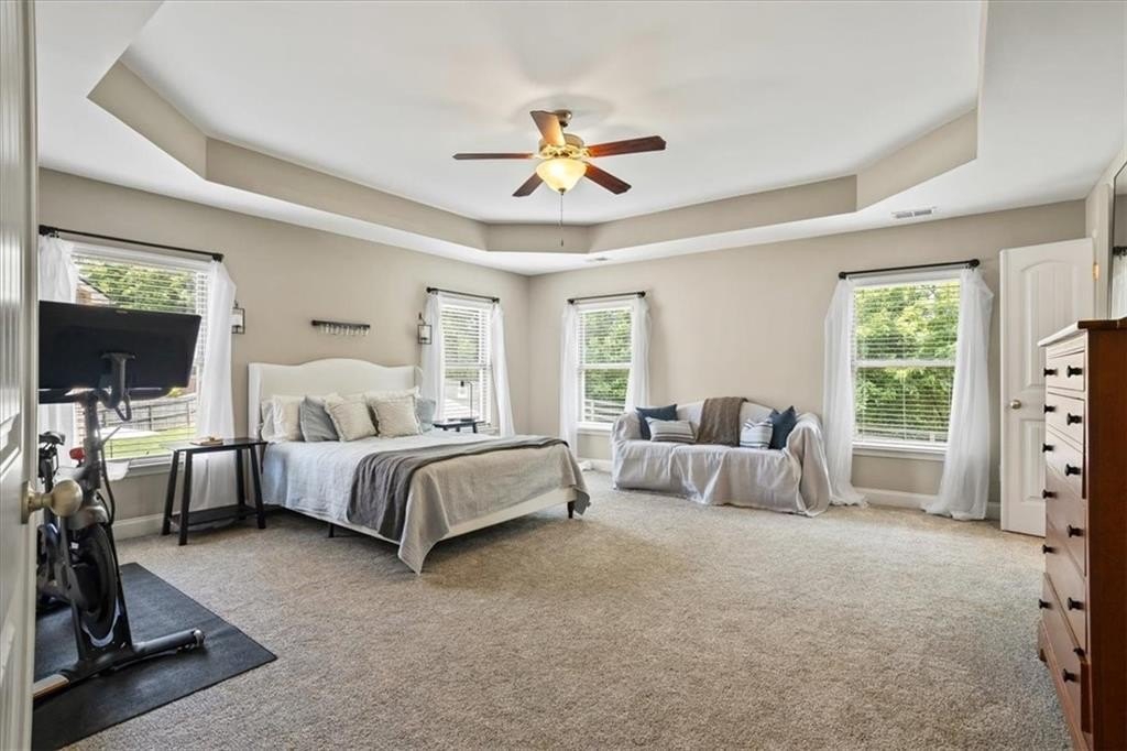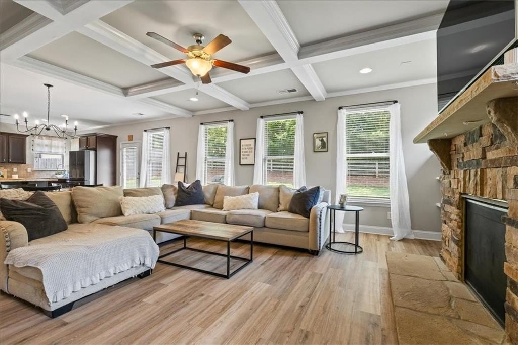 This warm and well maintained home is North facing and ready to move right in. The community is welcoming and offers a pool, tennis courts and a fun playground area as well as a peaceful community nature walk. The location is excellent, in a sought after school district, near Sawnee Mountain Park, less than 10 minutes from the new Cumming City Center, with restaurants, entertainment venues and shopping, and only 20 minutes from downtown Canton with even more restaurants and entertainment. The floor plan has an open flowing feel and ample kitchen space for culinary creations. The giant kitchen island has enough space for the family chef to create. The gorgeous great room features a coffered ceiling, current design touches with floating shelves, a beautiful stone fireplace and windows that fill the space with natural light. Then step outside to your perfectly flat fenced backyard. It's a wonderful place for the furry friends or family gatherings to celebrate life's events. Watch the fun from the decorative corner kitchen windows. The loft area, upstairs could be transformed into a mini-library reading nook, a media/game space, or just a space to have some space! Spacious bedrooms just off the loft offer quiet, private space and big walk-in closets, The master is especially spacious and offers a pretty tray ceiling and a luxurious master bathroom, large fully tiled shower and a HUGE Master Closet that will hold all of your shopping treasures and shoes. This is great home in great condition in a great community with great schools in great area of a great county. You get it!!!