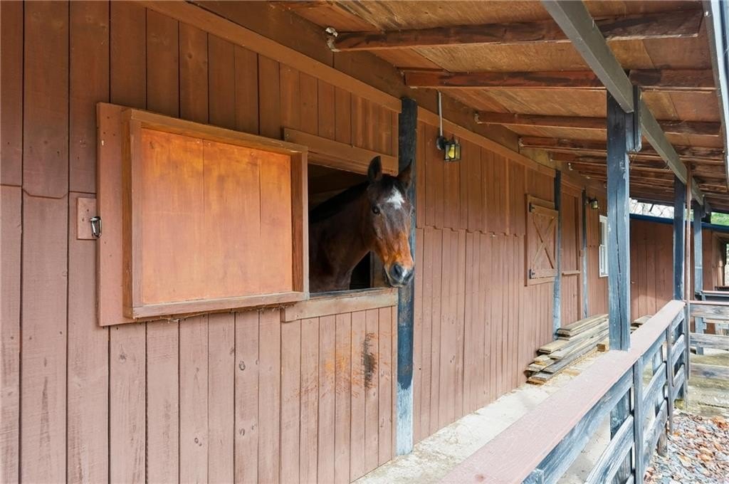 8.3+ acres of private, pristine fenced and managed pastures, 5,000+ SF luxury custom-built home with 2 fully functioning living levels, 6 stall working barn with tack room, wash bay, feed room, hay storage, full bathroom, fenced 80x210 dressage and jumping area with M10 footings. The home was built in 2015 with full high-end custom finish remodel in 2023/2024. Enjoy 2 fully finished levels with open floor plan living, full kitchens, dueling primary suites, oversized walk-in closets, cedar closets, laundry room, fitness room, office space, all tucked away on this private secluded estate. Plenty of extra storage, outbuildings, wood sheds, wraparound deck, sitting patio and so much more. Too many unique details to explain in writing. This is a must see in person to appreciate. The most affordable, working, well-maintained and manageable horse farm in the area.