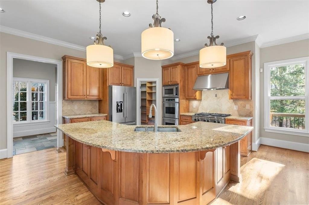 Beyond the gated entry, a long private drive leads to a circular driveway and three inviting porches overlooking the wooded surroundings. The main-level primary suite offers elegant trim, reading lights, and a massive walk-in closet with custom built-ins. Enjoy three gas fireplaces, surround sound hookups throughout (including the porches), and a gourmet kitchen with a wet bar, double ovens, and an upgraded walk-in pantry that opens to a vaulted keeping room. With stunning outdoor living spaces and an outdoor fireplace, this home is built for year-round entertaining and luxury living.