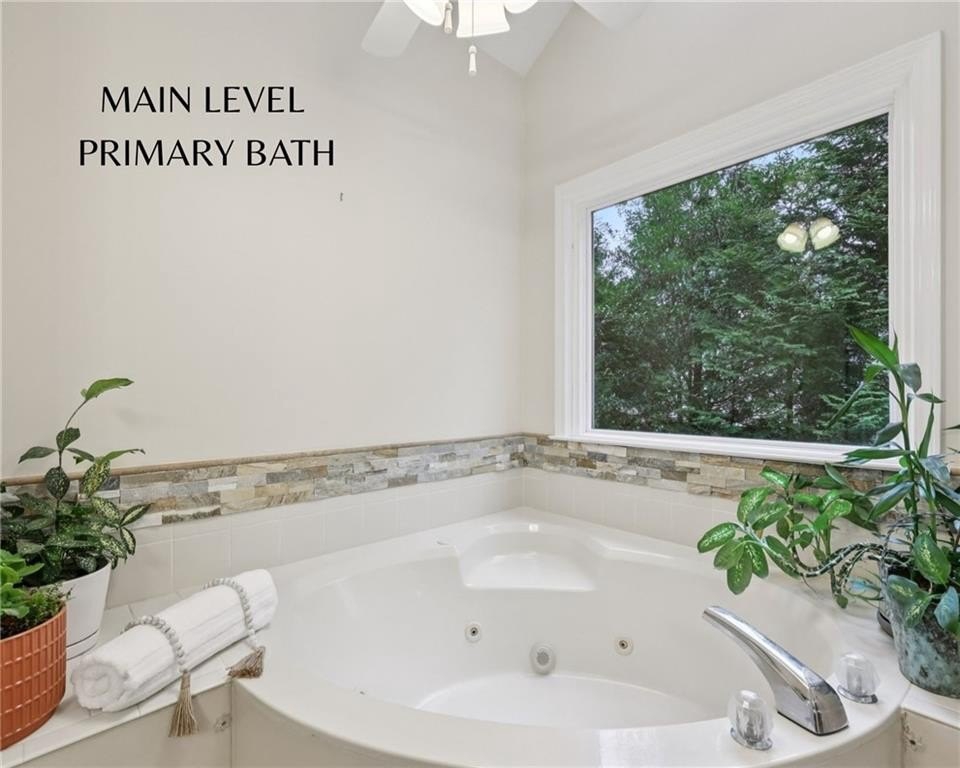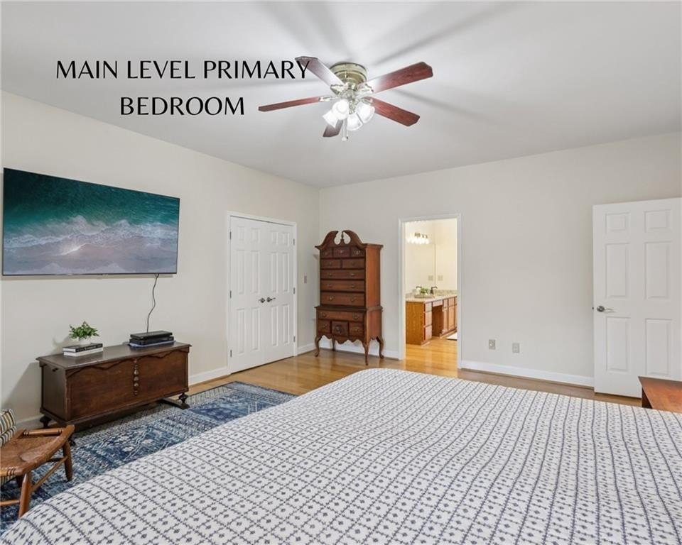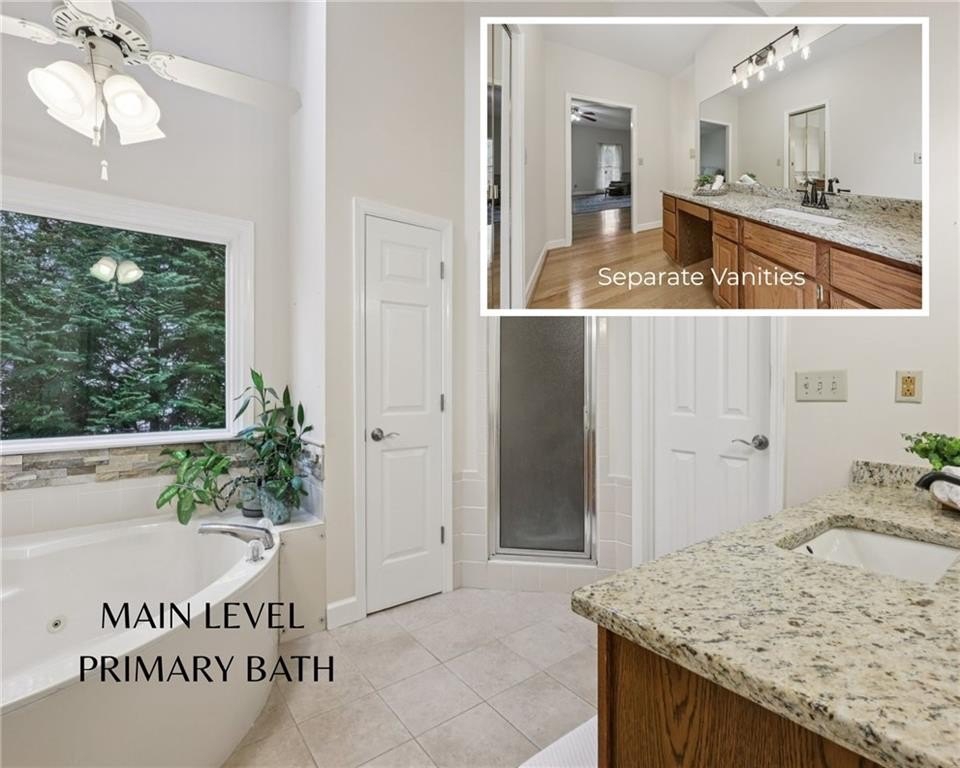 This home offers five bedrooms plus a bonus room and office that provide tremendous flexibility. The primary suite on the main level includes a walk-in closet and an en-suite bath with separate vanities, a soaking tub, a walk-in shower with steamer, and direct access outside. Upstairs is an en suite bedroom with a built-in desk area, walk-in closet, and its own private ensuite bath. Two additional bedrooms share a full hall bath. The large bonus room and office space offer wonderful natural light through oversized windows and scenic golf course views, creating an ideal area for a playroom, gaming room, media room, exercise space, or an additional work-from-home environment.