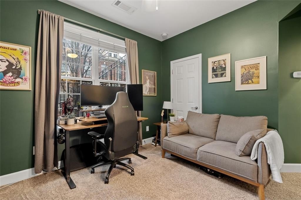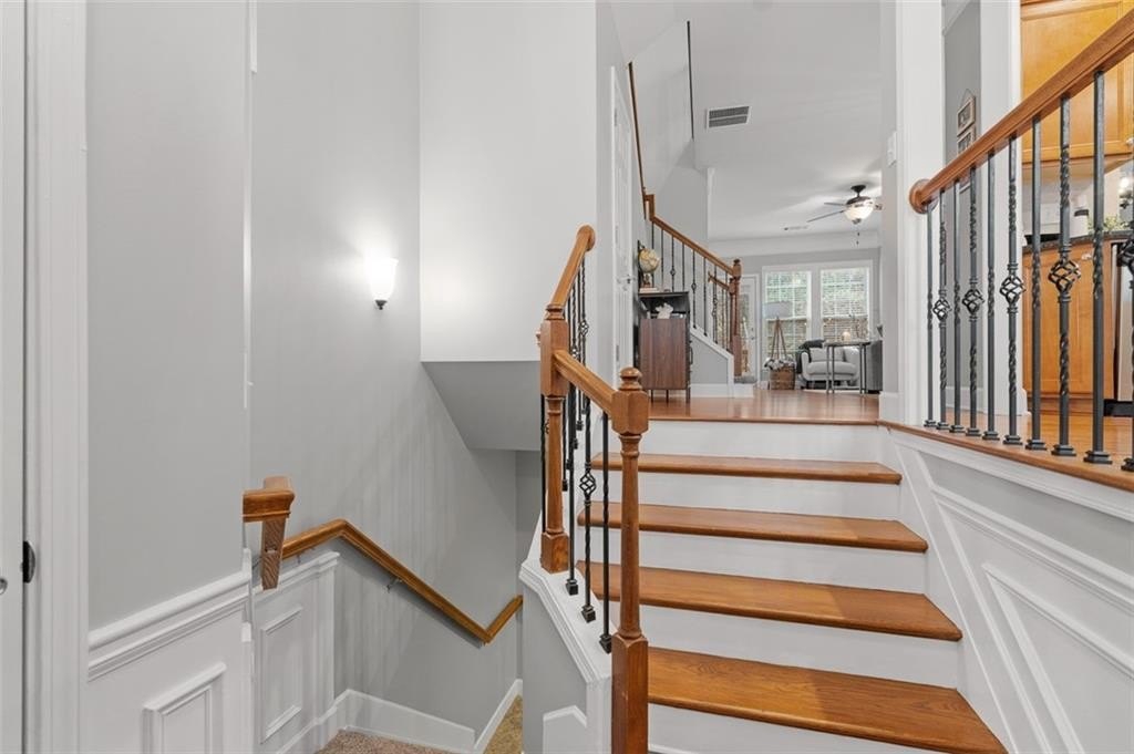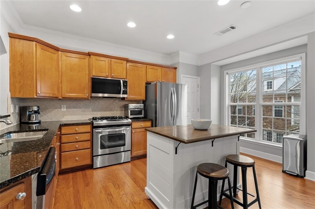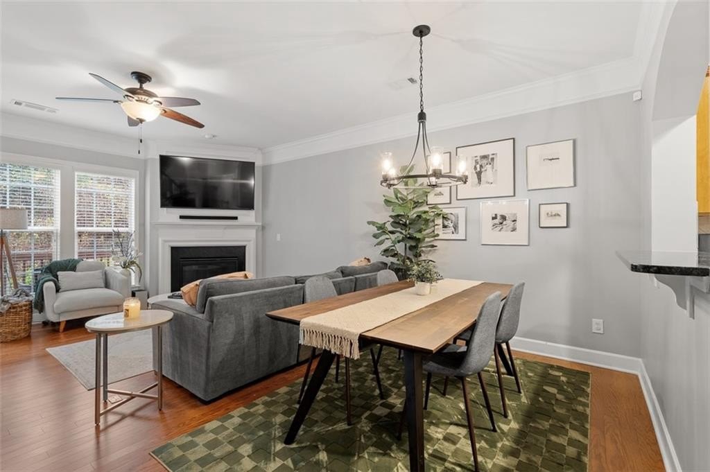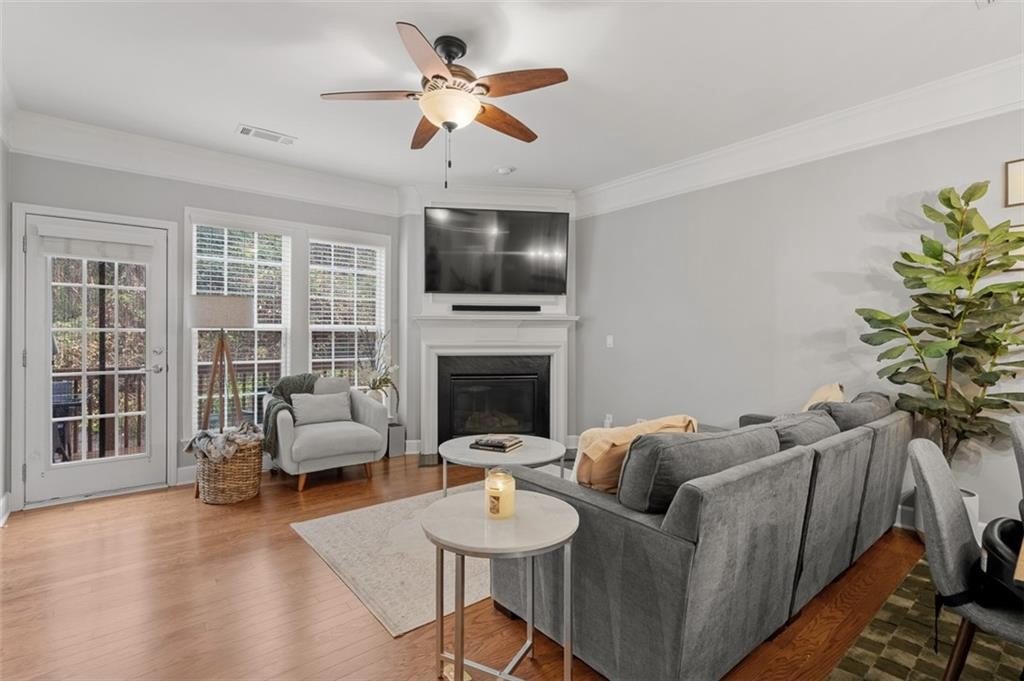 Fresh & Modern 3bed/3.5bath Townhome located in the Smyrna community of Views at Park Avenue! This awesome updated townhome built in 2010 has it all, starting with the main floor which features coat closet, hardwood flooring, a large open eat-in kitchen with updated appliances, granite counters, large walk-in closet/pantry, open dining & living room with built-in gas fireplace, half bath, additional closet and access to the large new rear deck (replaced in 2024). The 3rd floor features carpet, primary bedroom with walk-in closet and private ensuite bath with dual vanity and walk-in shower and a 2nd bedroom/double primary with large walk-in closet and private ensuite bath featuring tub/shower combo and the laundry room with full sized side-by-side washer & dryer (included) and additional closet/storage space. The first floor off the garage features the 3rd bedroom with carpet, walk-in closet and private ensuite bath, perfect for guests, office or flex space. There are two more large closet/storage spaces on the first floor and access to the two-car garage and two car driveway – Garage has tall ceilings. Each bedroom and living room include a modern ceiling fan and the whole house interior and exterior front has recently been professionally painted, top to bottom! New HVAC systems (one replaced in 2022 and the other in 2025). New Roof (replaced in 2023). This active community features a gated pool and clubhouse, dog walk stations, side-walks, street lights, access to the beltline connector and silver comet path/trail-way (across the street from the main entrance) easy access to West Village Marketplace shops & restaurants, Atlanta Rd & S Cobb. Perfect location, lots of green spaces and room for entertaining or just relaxing and getting away from the hustle and bustle. Quick access to I285, Smyrna City Center/Smyrna Market Village, The Battery/Truist Park, Cumberland Area shops & restaurants, Buckhead, Midtown, Downtown, Atlanta Airport and so much more. This is a fee simple townhome and the community does have rental restrictions capped at 10 percent.