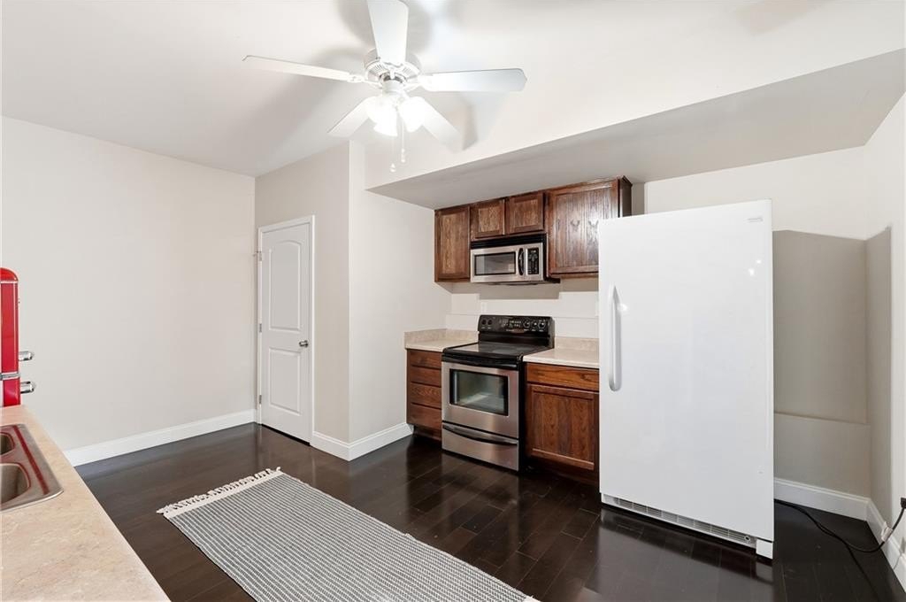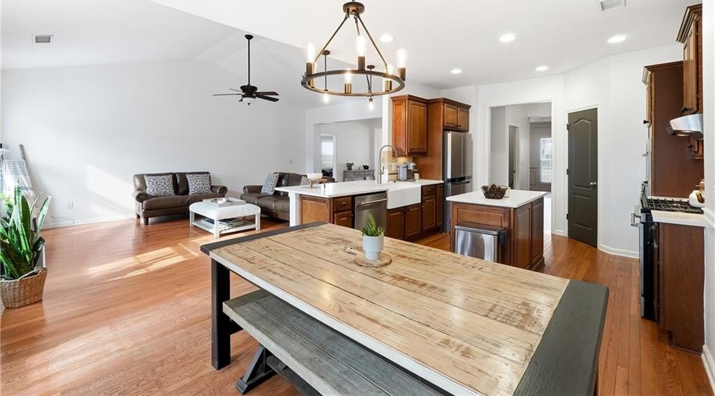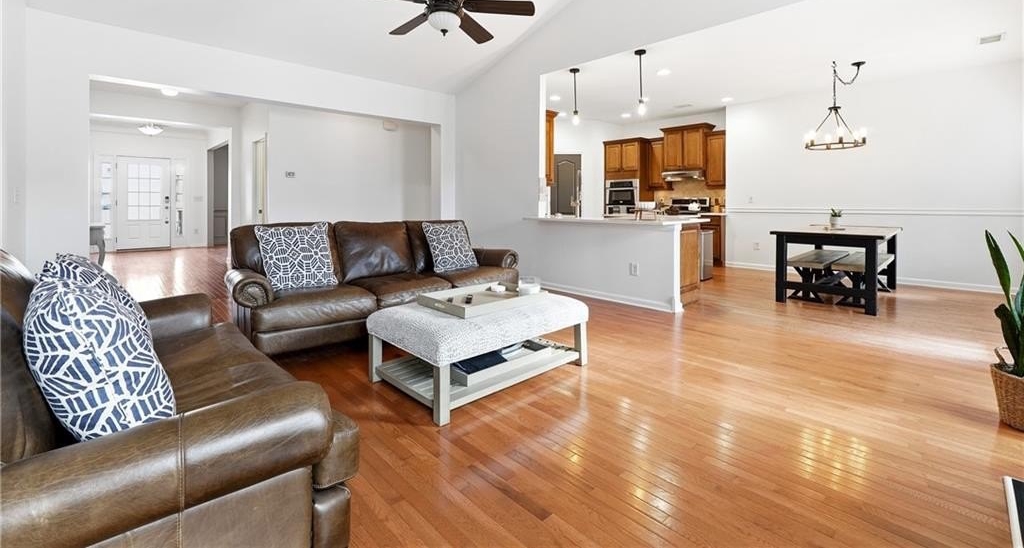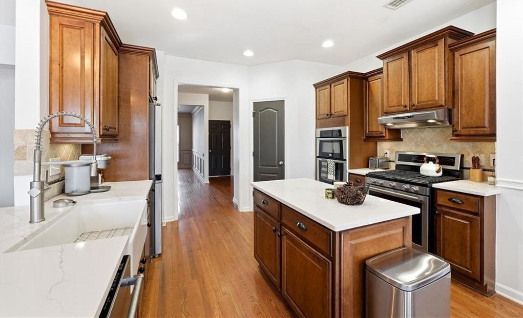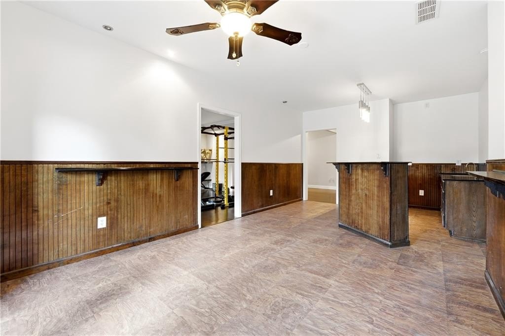 Welcome to this beautifully maintained 5-bedroom, 3.5-bath brick-front ranch nestled on over half an acre in one of Canton’s most sought-after swim/tennis communities. Perfectly positioned on a peaceful cul-de-sac lot overlooking a serene pond, this home offers nearly 4,900 square feet of living space and the rare opportunity for true multi-generational living with a finished terrace level featuring a full kitchen and private entrance. Step inside and you’re greeted by a bright, open floor plan with soaring vaulted ceilings. Just off the foyer, a front family room makes the perfect office or study, while a spacious formal dining room sits on the opposite side—ideal for hosting gatherings. Past the foyer, the cozy fireside family room flows seamlessly into the charming eat-in kitchen, creating a warm and welcoming everyday living space. The updated kitchen impresses with new stainless steel appliances, new quartz countertops, a new apron-front sink, double ovens, and a center island perfect for meal prep. From here, step out onto the back deck, a wonderful spot for grilling, entertaining, or simply taking in views of the fully fenced backyard below—complete with a storage shed and plenty of room for play, gardening, or yard games. The split-bedroom layout provides exceptional privacy, with the primary suite on one wing and secondary bedrooms on the other. The spacious primary bedroom features vaulted ceilings, his/hers closets, and an en-suite bath with double vanities, a soaking tub, and a separate tiled shower. Two additional bedrooms on the main level share a full bath, while an over-sized upstairs bedroom with a walk-in closet offers even more flexible space for guests, teens, or a bonus room. The expansive terrace level truly sets this home apart. With two separate entrances, a full kitchen, a bar area with wet sink, generous living space, a large bathroom, and multiple additional rooms, this area is ideal for an in-law suite, long-term guests, a home gym, office, media room—whatever your lifestyle needs! The terrace level also includes a small workshop area and an unfinished storage/safe room. Additional features include a newer roof, fresh interior paint, and the added feeling of privacy only a wooded, pond-view lot can offer. Listen to birdsong, watch deer wander by, and enjoy peaceful evenings with the rustle of trees in the background. Located in the highly rated Avery / Creekland / Creekview school district and just 6 minutes to Canton Marketplace, I-575, and historic downtown Canton, this home offers the perfect blend of convenience, comfort, and natural beauty! Don’t miss the chance to make this exceptional property your own—it truly lives like two full homes in one!