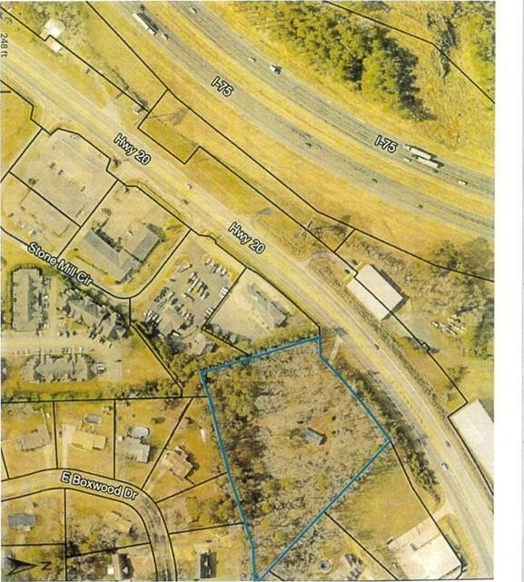 4+ acres with over 300 feet of road frontage on Highway 20. Under 1 mile from Exit 290 (I-75N). Traffic count is over 20,000 vehicles per day. Visible from Interstate. Potential commercial use for restaurant, Hotel, Quick shop, offices.
