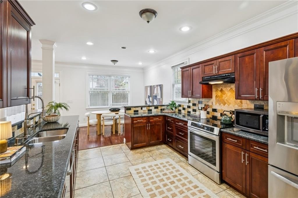 The fully fenced backyard wraps around the home, creating an easy, low-maintenance space for pets, play, or gardening. Don't miss the 5 blueberry bushes, 2 plum trees, 3 paw paws, crabapple, fig, even a cherry tree! And the two-car garage, a true luxury in Atlanta, is already outfitted for your electric vehicle, complete with upgraded surge protection.
