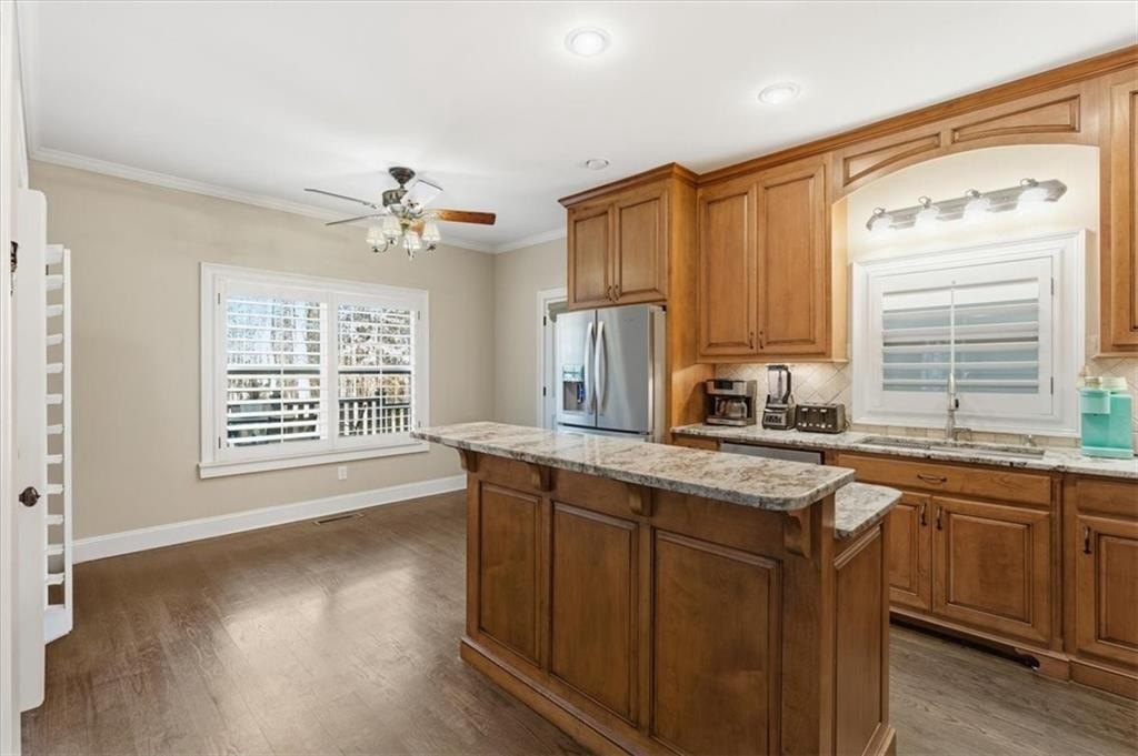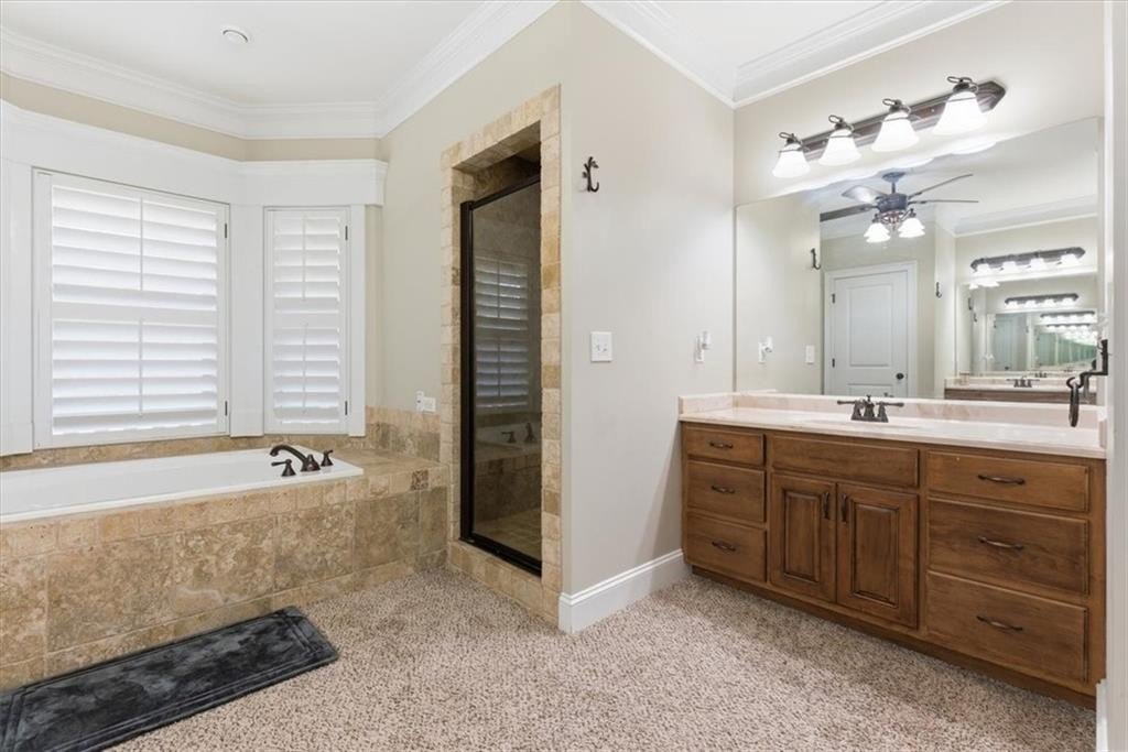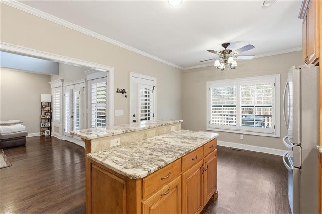 The main-level primary suite offers a private retreat with a spa-like bath featuring a soaking tub and separate shower. A rare find, the home also includes a complete in-law suite with its own entrance, full kitchen, den, bedroom, and bath—perfect for extended family or guests. Upstairs, a finished bonus room provides flexible space for an office, playroom, or guest quarters.