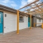 CARPORT FEATURES NEW EPOXY FLOORING FOR A CLEAN AND DURABLE FINISH.